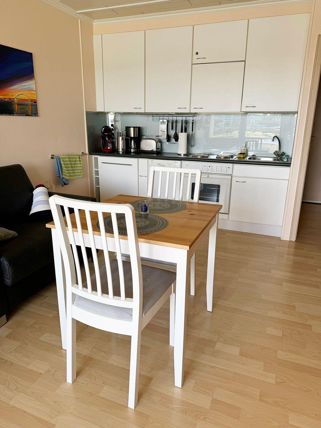 Die gut ausgestattete Küche bietet alles, was Sie für entspannte Mahlzeiten benötigen: eine Spülmaschine, einen Backofen und ein Kochfeld (inklusive Expressplatten), sowie ausreichend Geschirr, Besteck und Küchenutensilien, um auch im Urlaub wie zu Hause zu kochen. Für Ihre Anreise gibt es einen kostenlosen Parkplatz in unmittelbarer Nähe (Nr. 37-02-07). Die Wohnung ist eine Nichtraucherwohnung, und Haustiere sind leider nicht erlaubt.