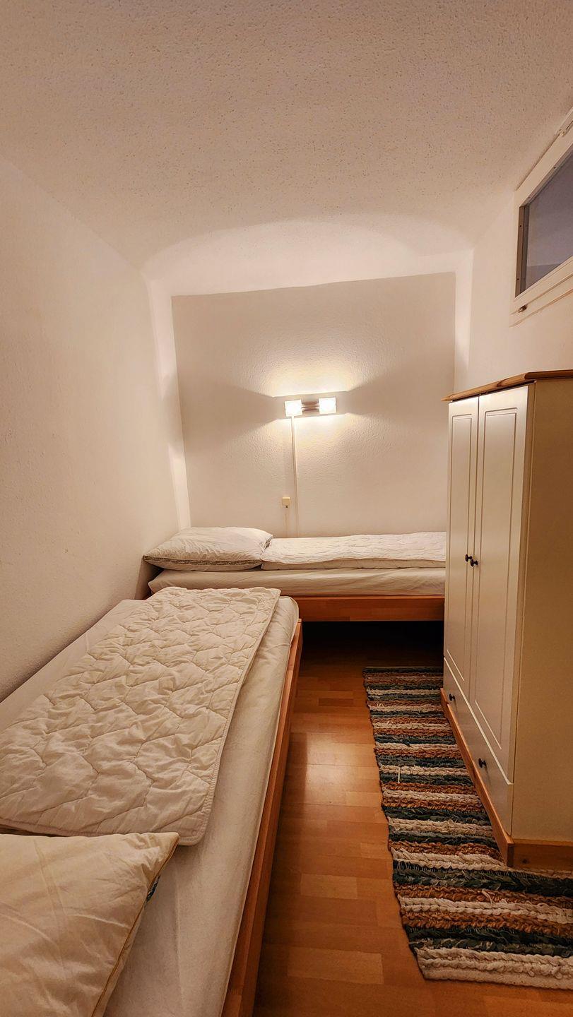 Das separate Schlafzimmer verfügt über zwei Einzelbetten, einen Kleiderschrank sowie über ein Fenster zum Wohnbereich.