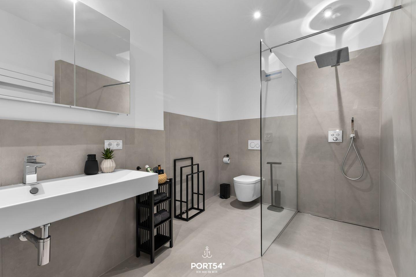 Zur weiteren Ausstattung gehören Badezimmer mit bodengleicher Dusche, Waschmaschine, Trockner, Fußbodenheizung, E-Bike-Ladestation im abschließbaren Fahrradschuppen und ein privater Parkplatz, damit du maximalen Komfort genießen kannst. In der Umgebung gibt es zahlreiche Freizeitmöglichkeiten – von Angeln über Fußball bis hin zu kulturellen Events und Festivals.