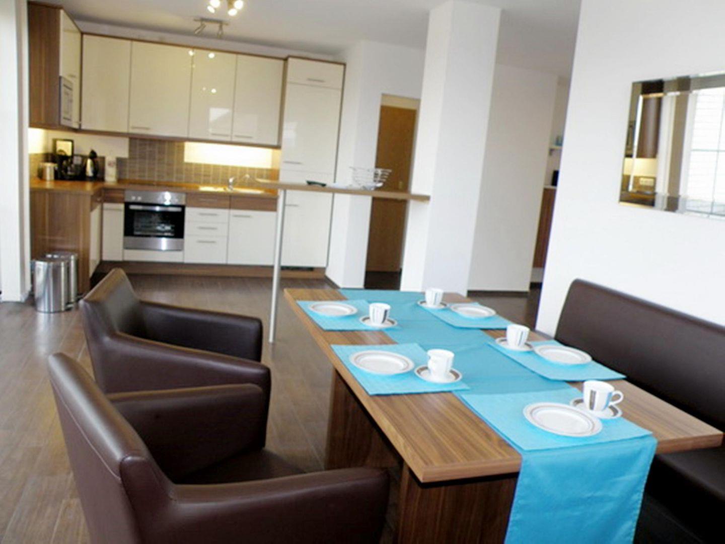 Wohnzimmer mit Ledercouch u. 2 Sesseln, 55"-LCD-TV, Kaminofen, Balkon zur Westseite/Naturschutzgebiet. Offener Küchenbereich mit 4er-Ceranfeld, Backofen, Geschirrspüler, Mikrowelle, Kühlschrank mit Gefrierfach, Dolce-Gusto-Kaffeemaschine, angeschlossener Essbereich mit moderner Eckbank, 2ter LCD-TV, Stühlen und Tresen mit Barhockern. Balkon zur Nord/Ostseite mit Blick auf die Ostsee. 2 sep. Schlafzimmer mit Doppelbett und Kleiderschrank. 2 Bäder mit Dusche und eins davon mit direktem Zugang zur Sauna. Münz-Waschmaschine und - Trockner im Keller. Garage (Erste Garage hinterm Tor gehört zum Penthouse-Wohnung) . Nichtraucher, Tierhaltung auf Anfrage.