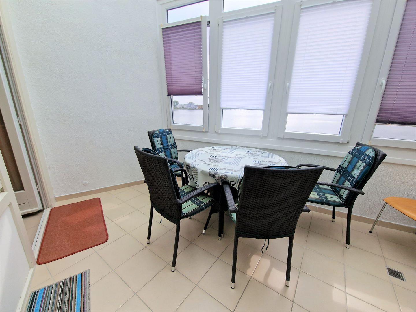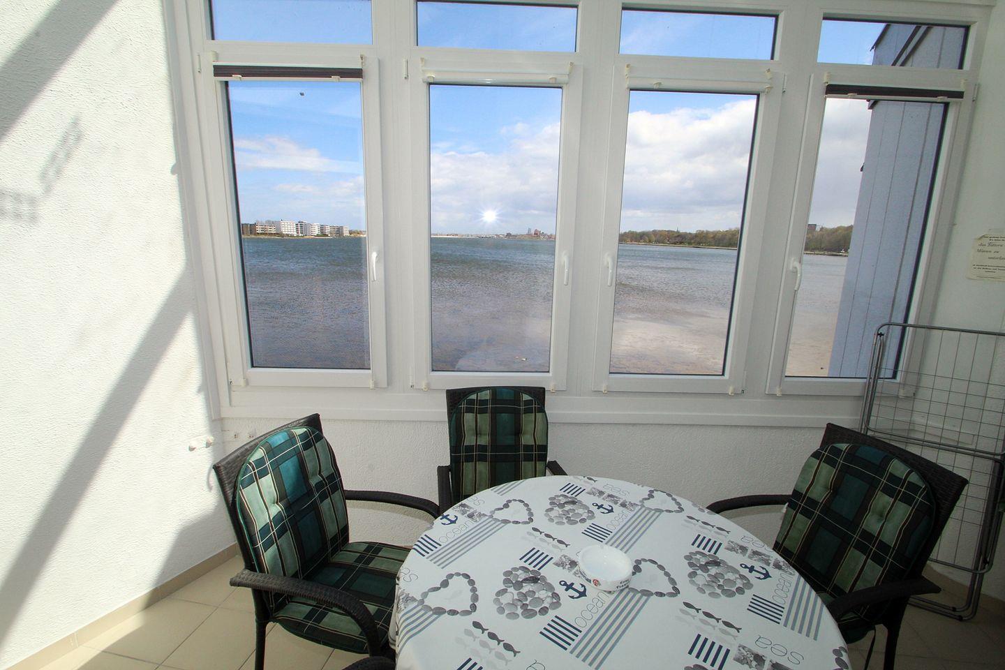 Helle, freundlich eingerichtete und geflieste Wohnung mit tollem Blick über den Binnensee Richtung Yachthafen und Heiligenhafens Stadtkern.