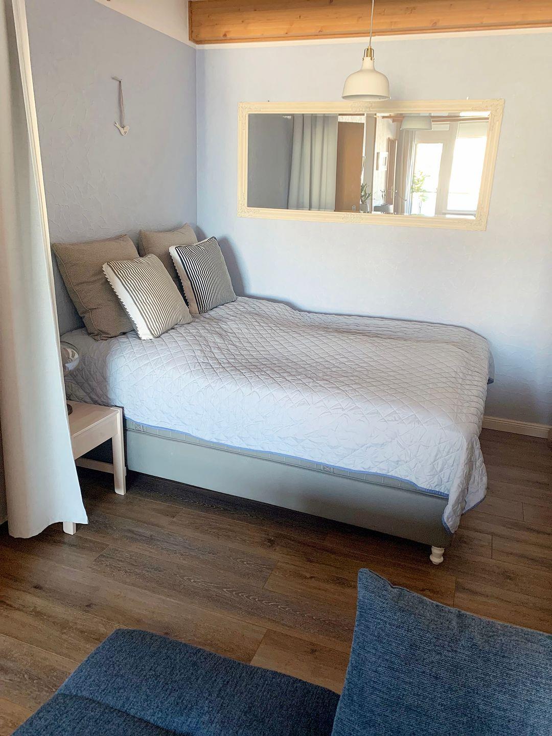 Der Schlafbereich, mit einem bequemen Box-Springbett (1,60x 2,00m) befindet sich im hinteren Teil der Wohnung. Bitte hierfür ein großes Laken mitbringen - das Kinderzimmer ist mit einer Doppelschlafcouch (1,40 x 2,00m) ausgestattet - auch hierfür bitte ein großes Laken mitbringen.
