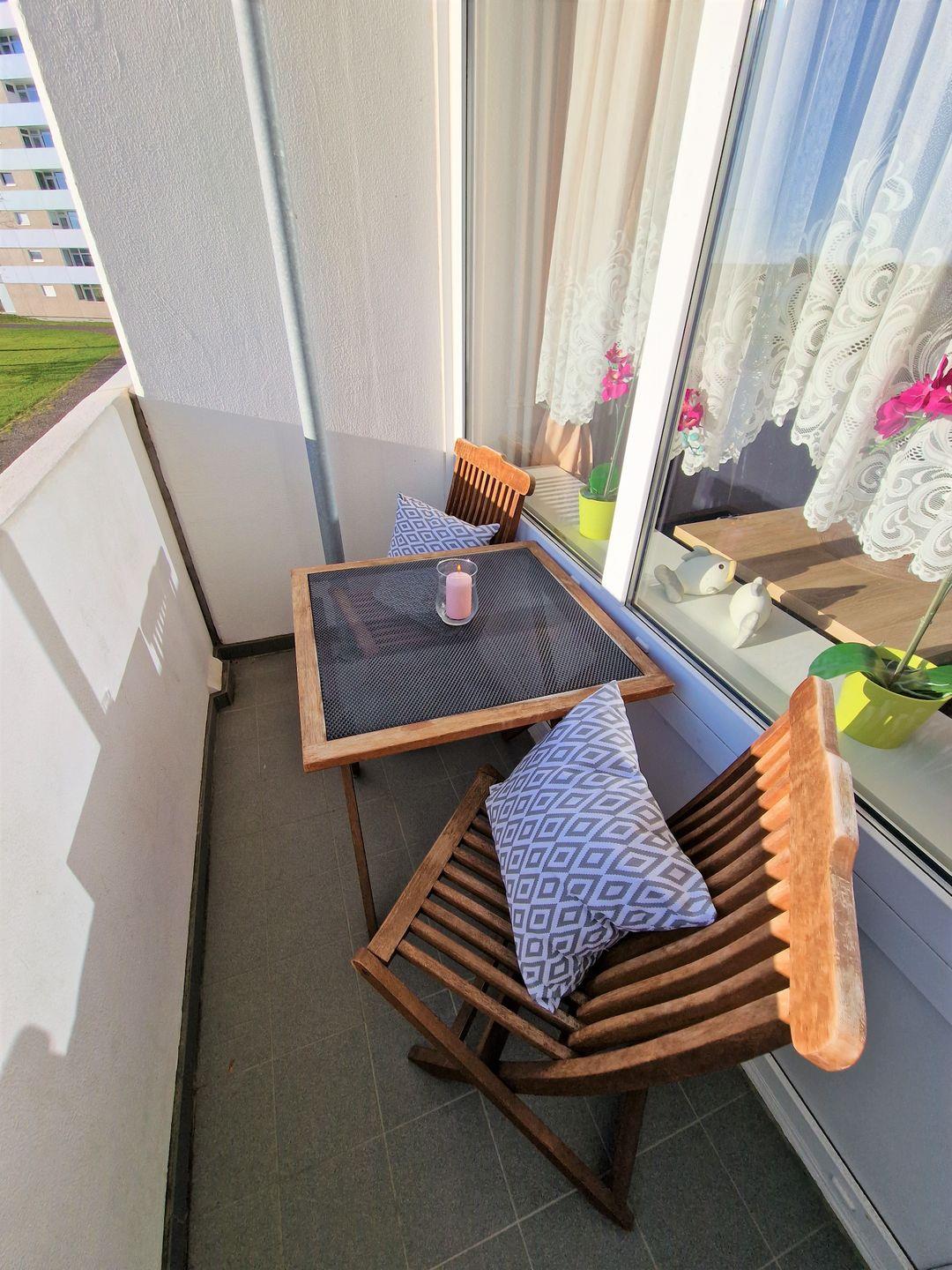 Das Badezimmer wurde erneuert und verfügt nun über eine tolle Duschkabine mit Falttüren, ein Schränkchen, kl. Regale und Stand-WC. Auf dem sonnigen Süd-Balkon laden wertige Holzmöbel (1 Tisch und 2 Stühle) zum Verweilen ein. Die Wohnung ist mit hochwertigem Design-PVC-Planken ausgelegt!