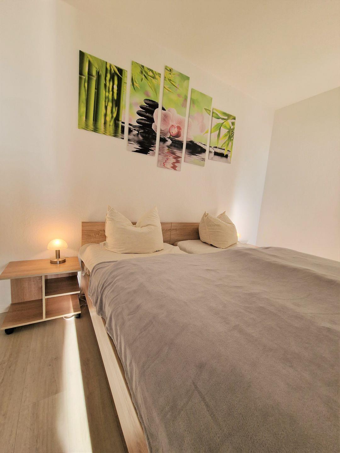 Sonnige und gepflegte Ferienwohnung, komplett mit hellem PVC-Laminat ausgelegt, in der 1. Etage mit Blick ins Grüne.