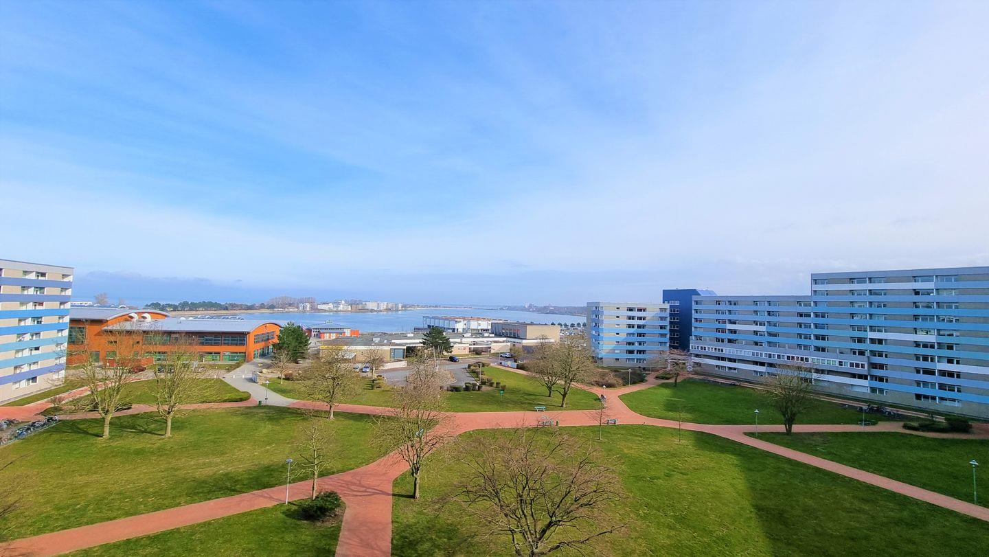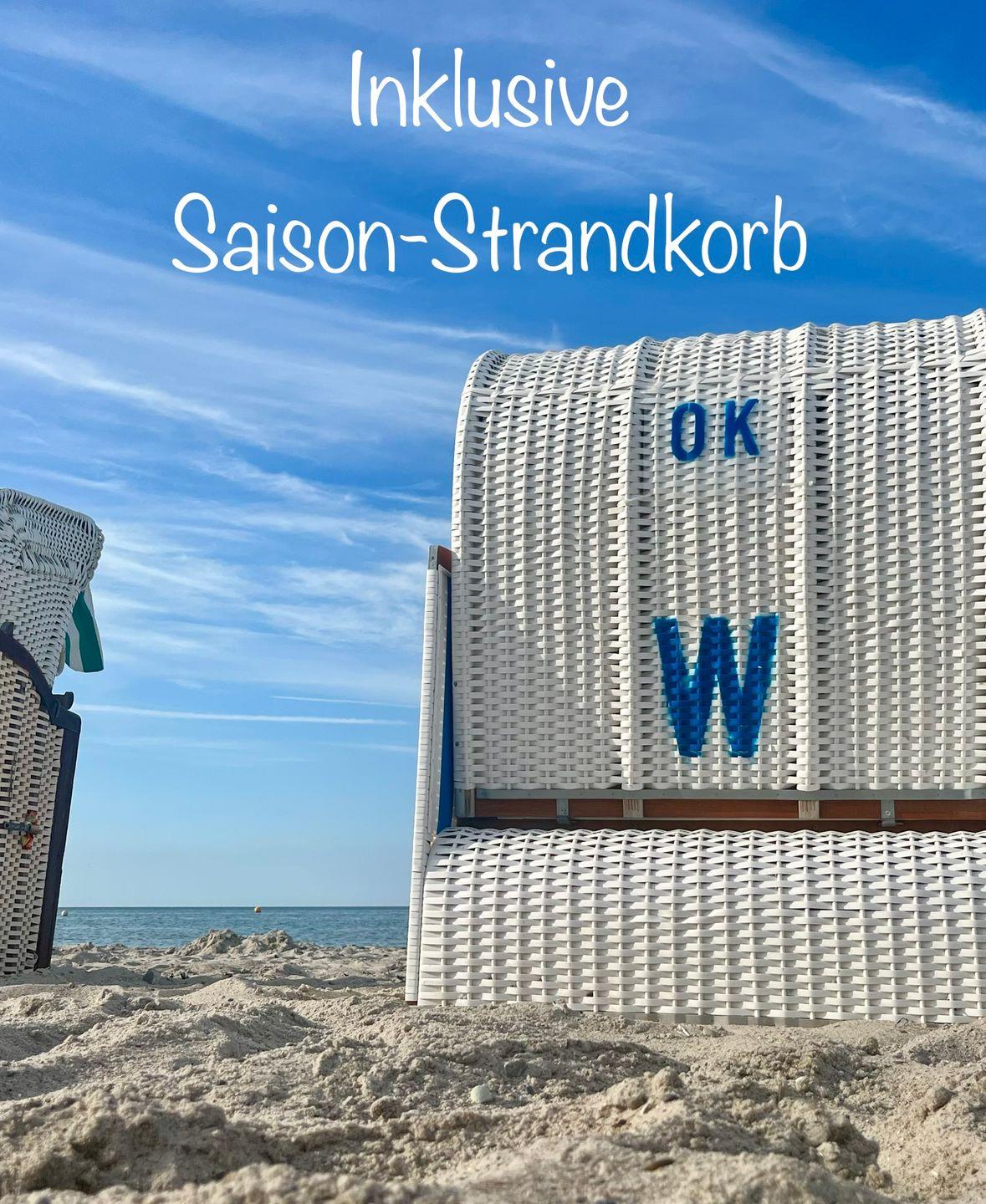 Von hier haben Sie einen herrlichen Blick auf den Binnensee und die Ostsee in Richtung Fehmarn - am Strand erwartet Sie ein Saisonstrandkorb!