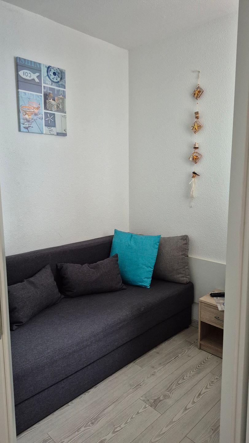 Diese tolle Ferienwohnung ist hell und modern eingerichtet und verfügt über einen kombinierten Schlafraum sowie ein sep. kleines Schlafzimmer mit Schlafcouch und einem kleinen Flachbild TV (52cm). In dem, durch einen Vorhang abgeteilten Schlafraum, befinmdet sich ein schönes großes Doppelbett (1,8 x 2,0 m).