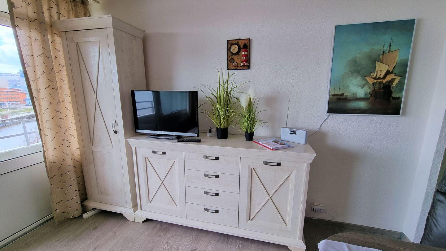 Sehr schön aufeinander abgestimmte Ferienwohnung in der 4. Etage mit Balkon zur Südseite und Blickrichtung direkt über den Binnensee.