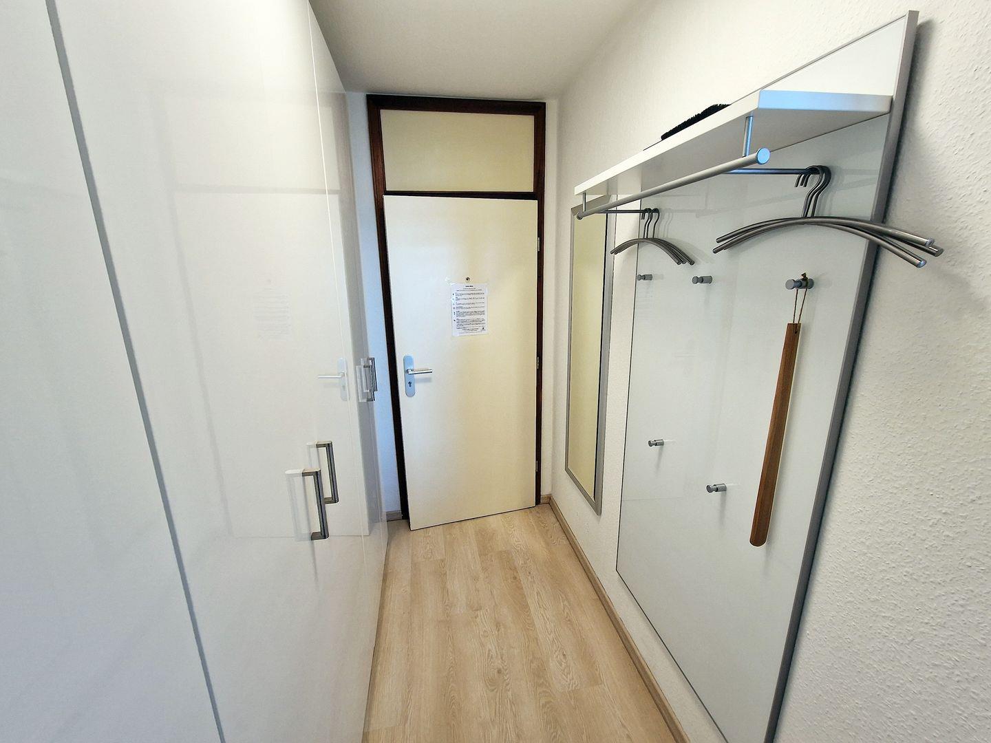 Ferienpark C05-009 in Heiligenhafen: 43 m² im 5. Stock mit Aufzug, 2 Zimmer, 1 Schlafzimmer und Schlafmöglichkeiten für bis zu 5 Personen (1 Platz nur für Kinder). Helle Ferienwohnung mit außergewöhnlich gutem Meerblick und überdachtem kleinem Balkon mit Gartenmöbeln. Kochnische mit Ceranherd, Backofen, Spülmaschine. WLAN, TV/Sat, DVD, Parkplatz kostenlos. Strandkorb am Sandstrand inkl., Strand/Meer ca. 400 m.
