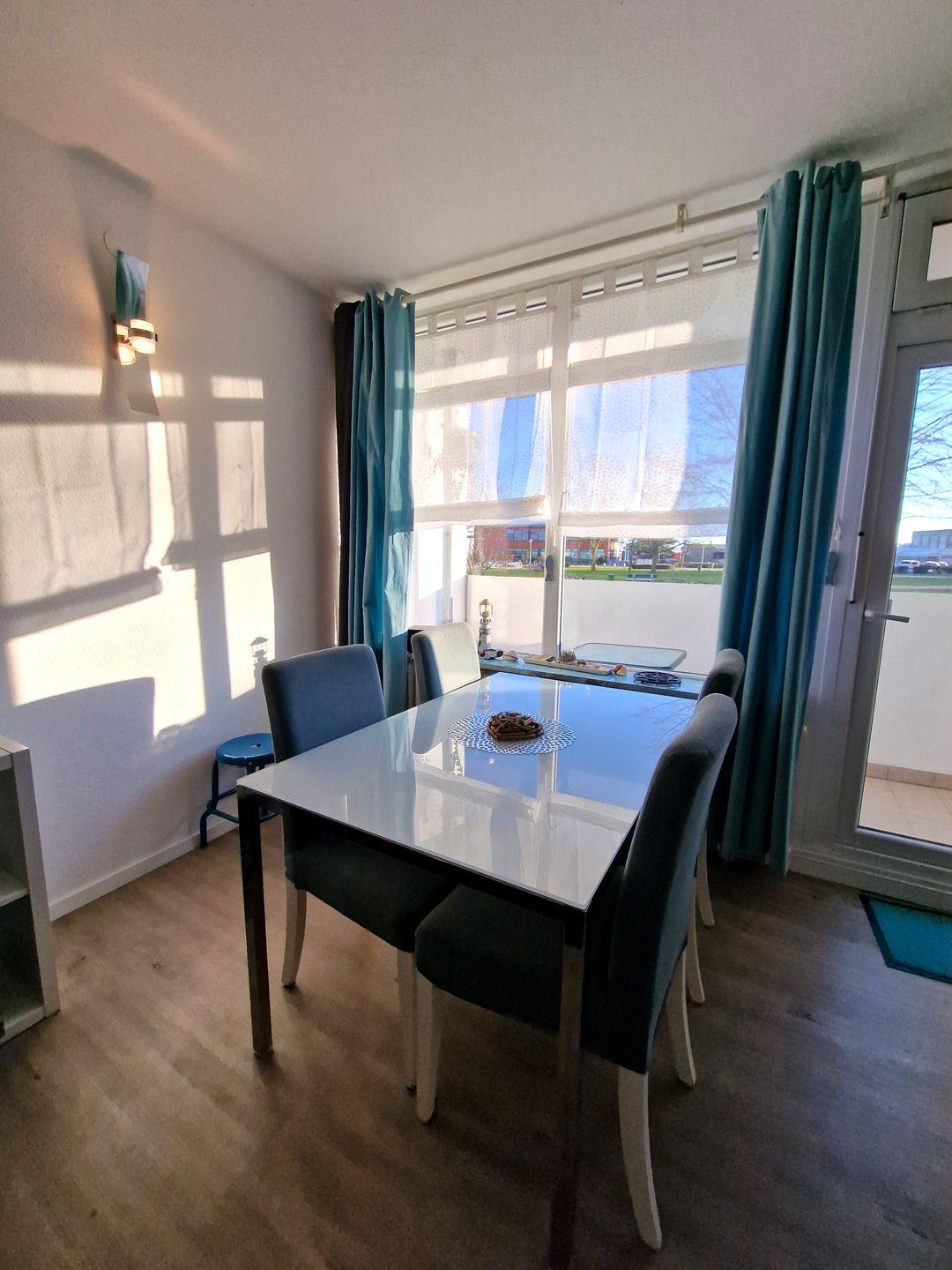 Der schöne Essbereich befindet sich direkt am Fenster.