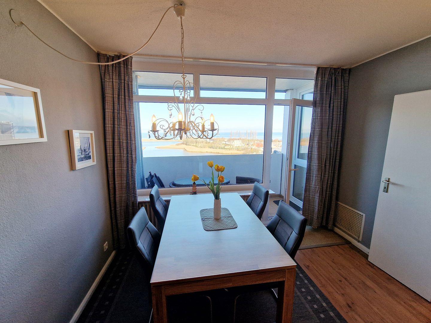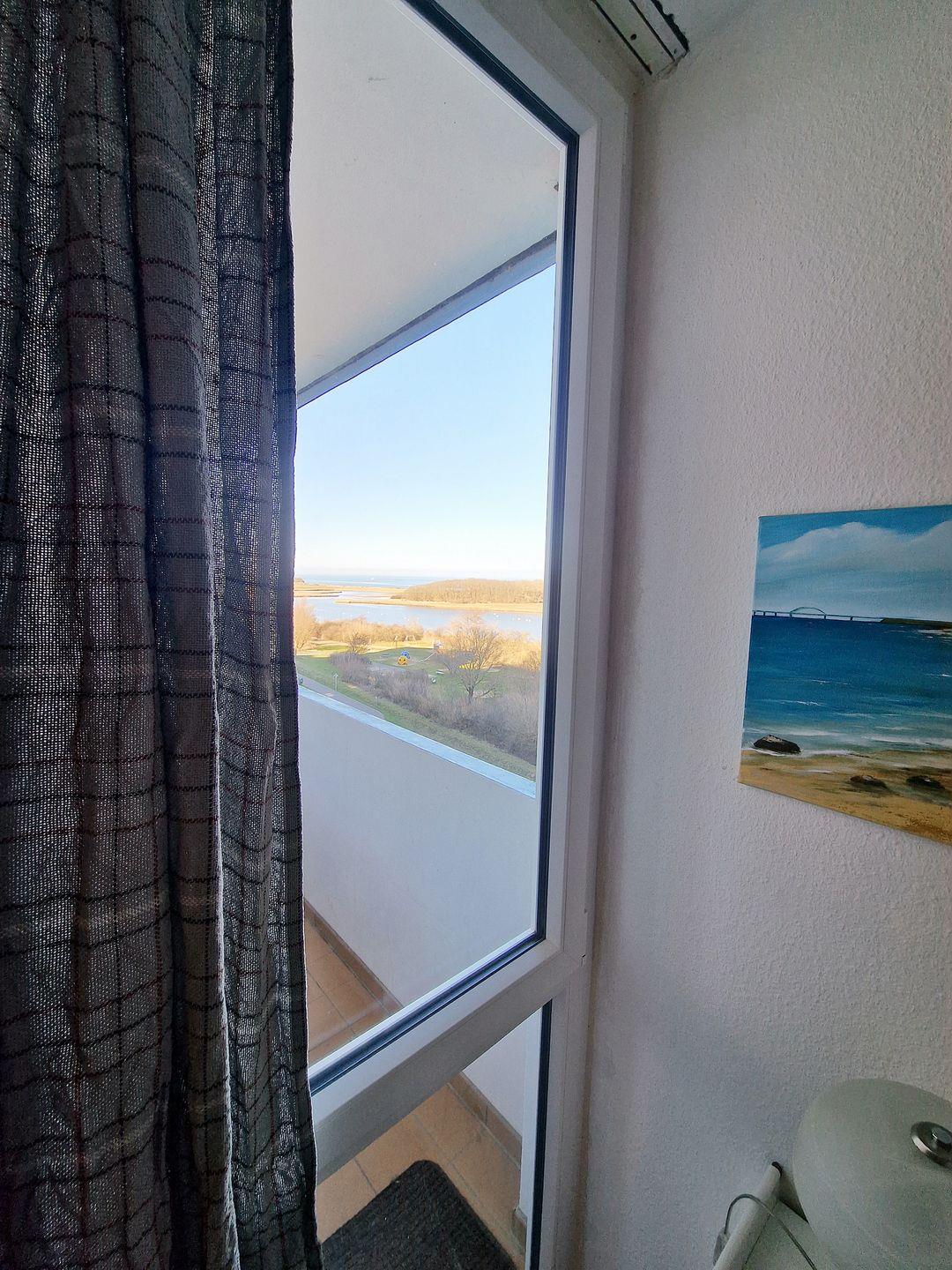 Ein besonderes Highlight ist der kleine Balkon mit seinem weiten Blick über die Natur bis hin zur Ostsee. Durch die Nordausrichtung genießen Sie hier auch an warmen Tagen eine angenehme Frische. Ob beim Durchatmen, beim Blick über die Salzwiesen oder beim Lauschen des Meeresrauschens – dieser ruhige Rückzugsort macht jeden Moment im Freien zu etwas Besonderem.