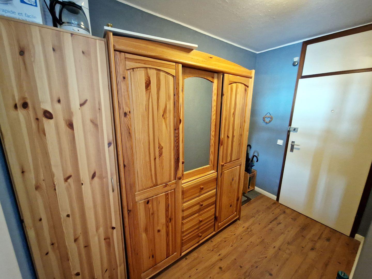 Der Schlafbereich ist gemütlich gestaltet und durch einen blickdichten Vorhang vom Wohnraum abgetrennt, sodass eine angenehme Privatsphäre entsteht. Ein separates Kinderzimmer mit Etagenbett bietet zusätzlichen Platz und macht die Wohnung besonders attraktiv für Familien. Ein modernes Badezimmer sowie praktische Ausstattungsmerkmale wie TV, ein eigener Parkplatz und Balkonmöbel sorgen für zusätzlichen Komfort während Ihres Aufenthalts.