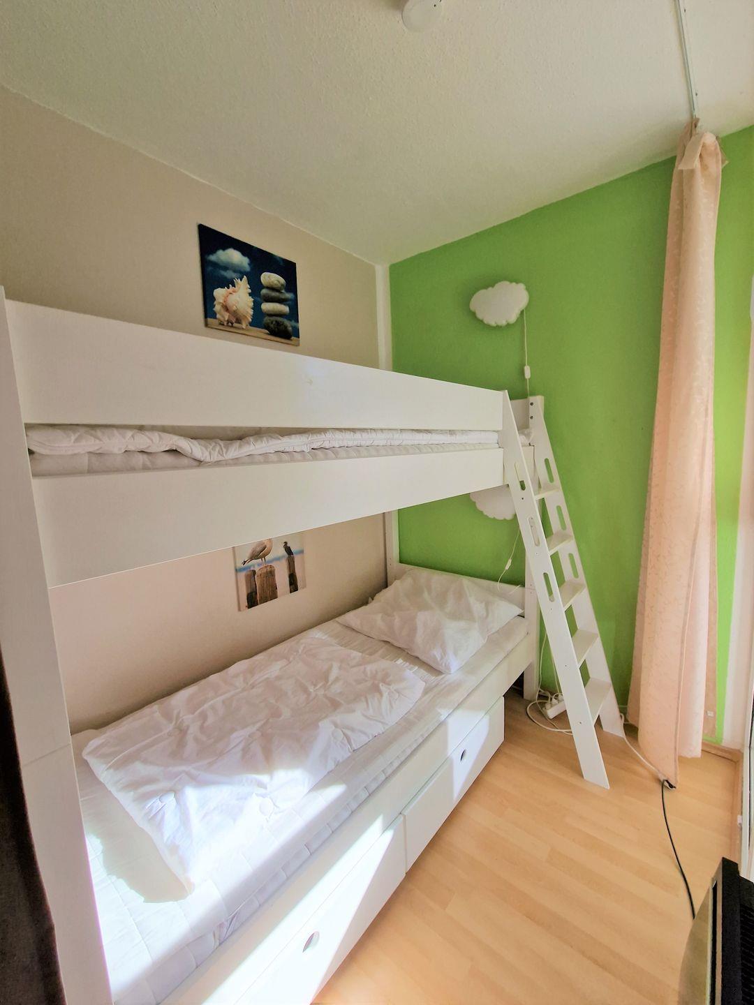 Im Kinderzimmer befindet sich ein Etagenbett.