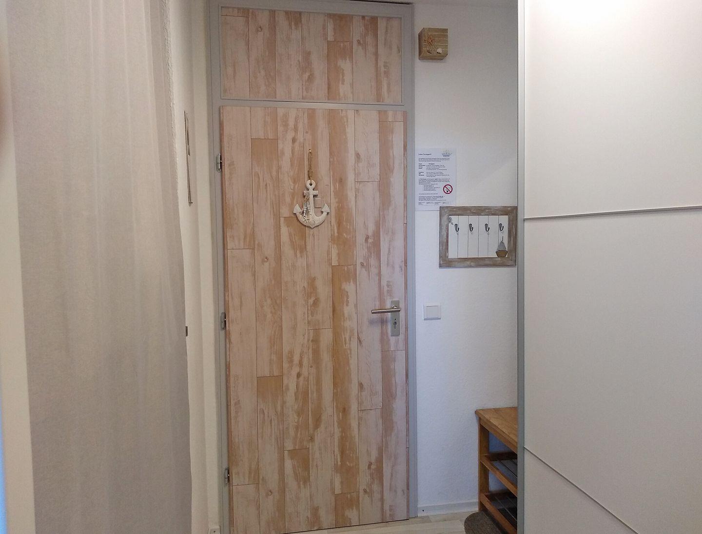 In unserer hellen, modernen Ferienwohnung mit Laminatboden, Vollholz-Möbeln und einer zusätzlichen, erhöhten Essgruppe vor dem Fenster,