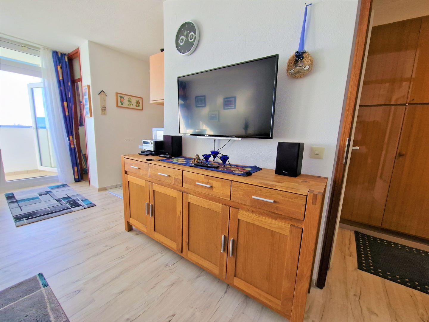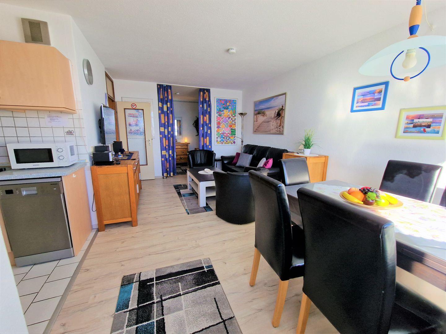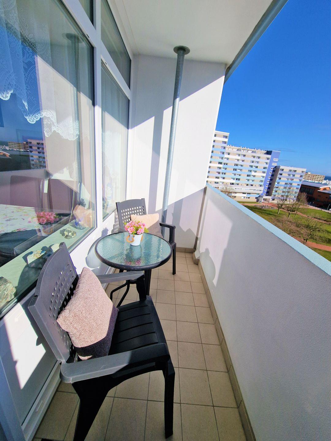 Schöne und helle Wohnung in der 7. Etage mit Balkon zur Ostseite und Blick über den Innenhof in Richtung Binnensee/ Fehmarnsund/Ostsee.