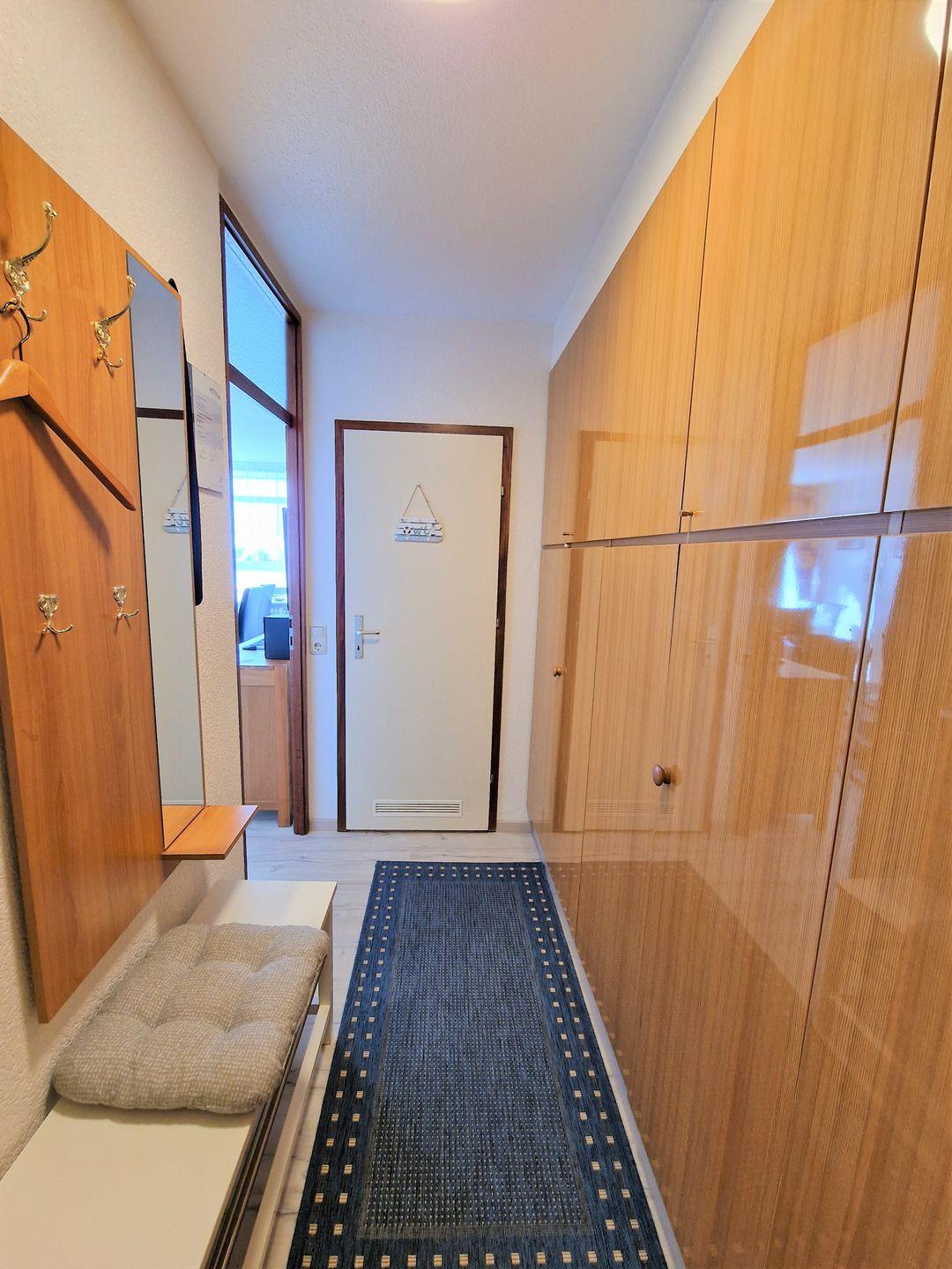 Im Flurbereich bietet ein großer Kleiderschrank viel Stauraum.