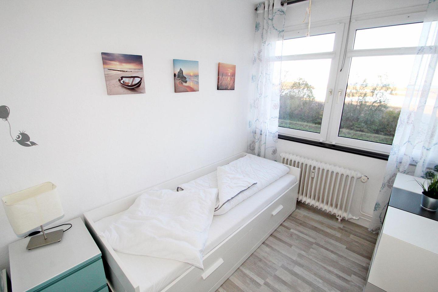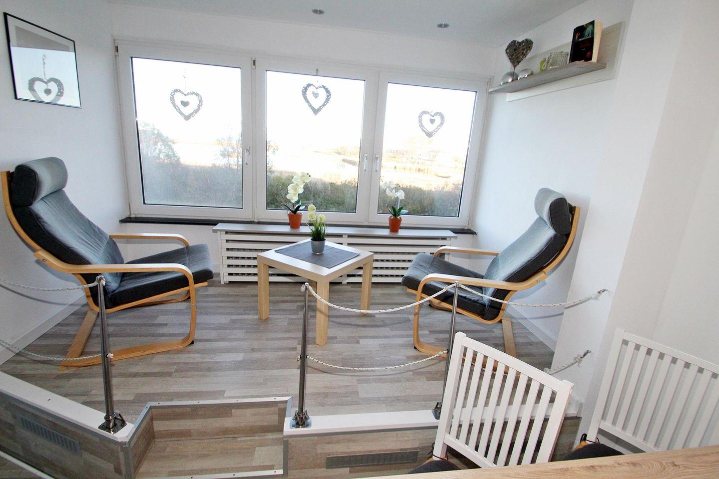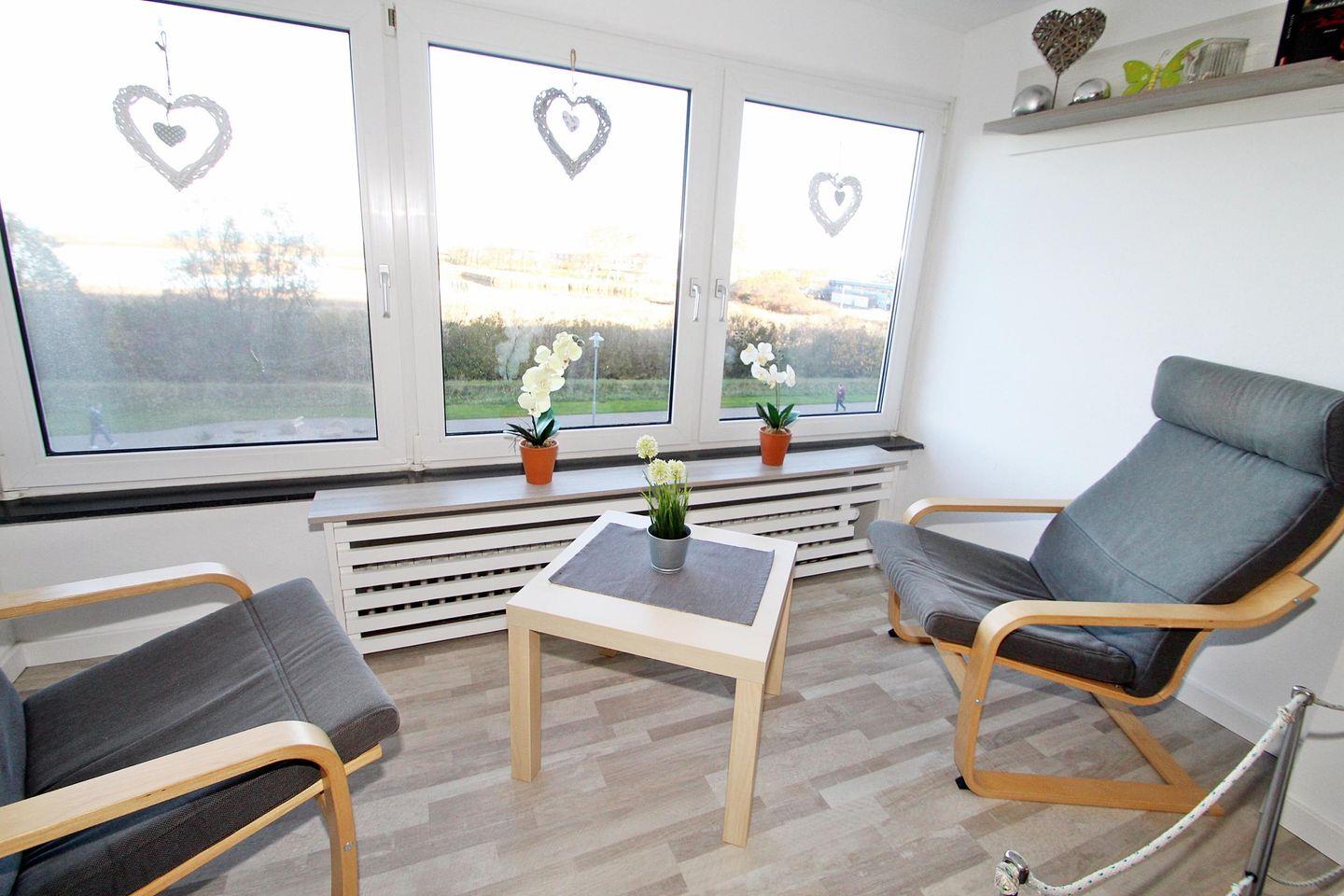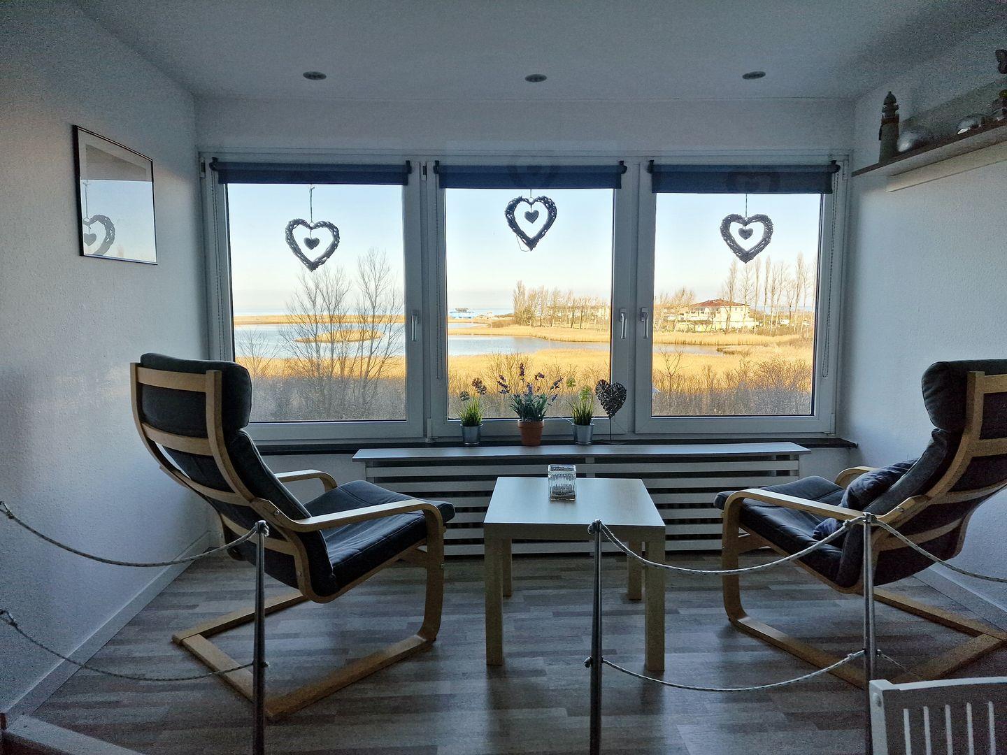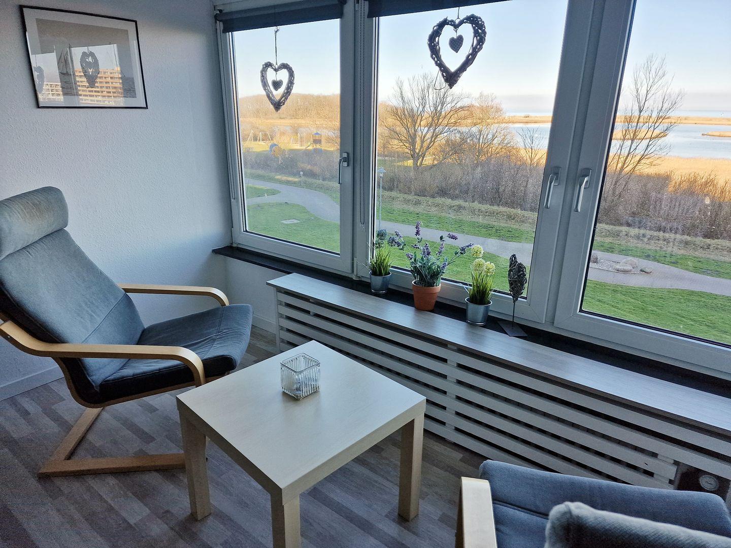 Gemütliche Ferienwohnung mit modernem, dezent maritimem Stil und schönem Seeblick – ohne Balkon.