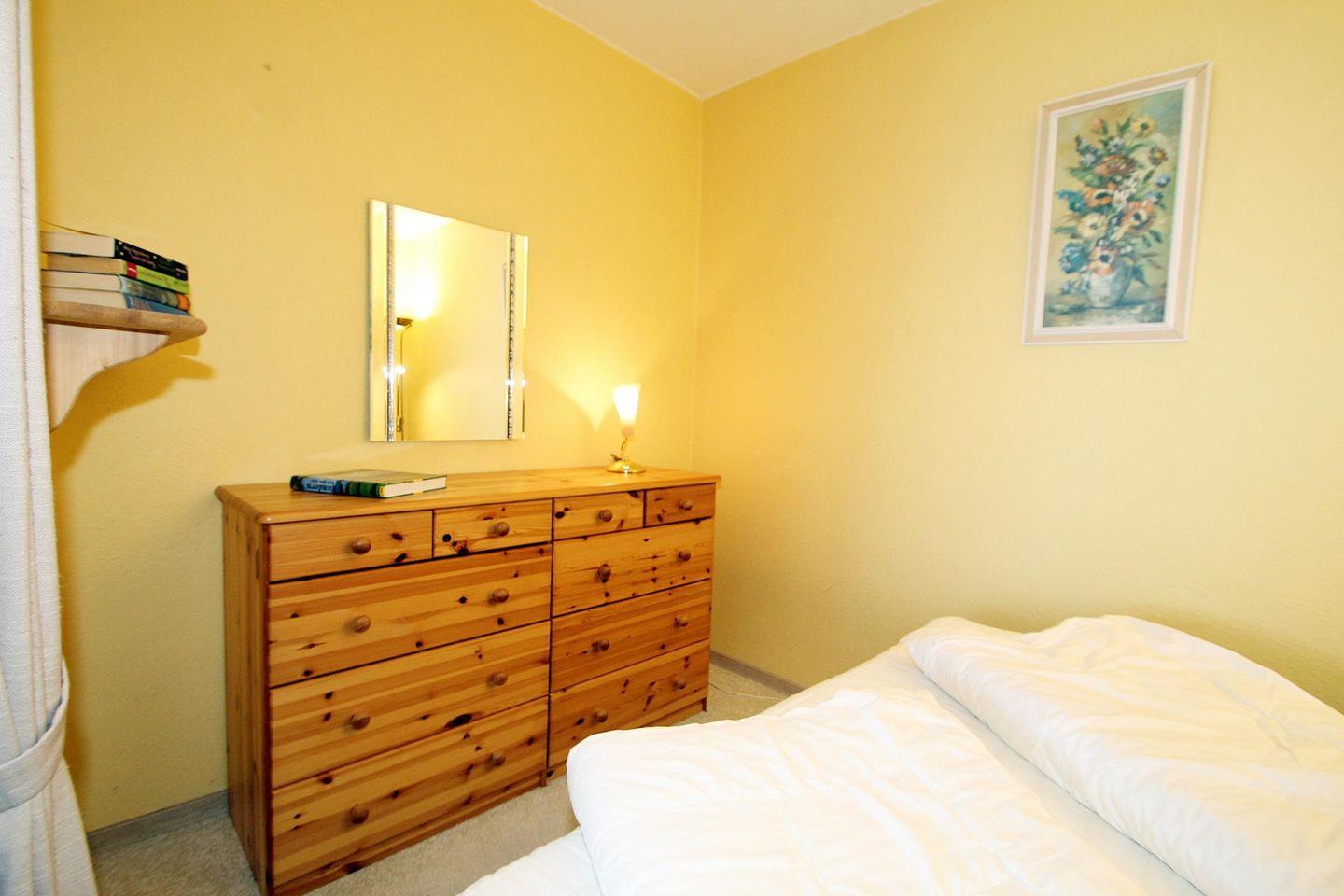 Das Schlafzimmer ist mit einem gemütlichen Teppichboden ausgestattet und bietet bequem Platz für erholsame Nächte. Hier finden Sie alles, was Sie brauchen, um am nächsten Morgen erfrischt und bereit für neue Abenteuer zu sein. Ein modernes Badezimmer mit Dusche und Badewanne sorgt für zusätzlichen Komfort und Raum zum Entspannen.