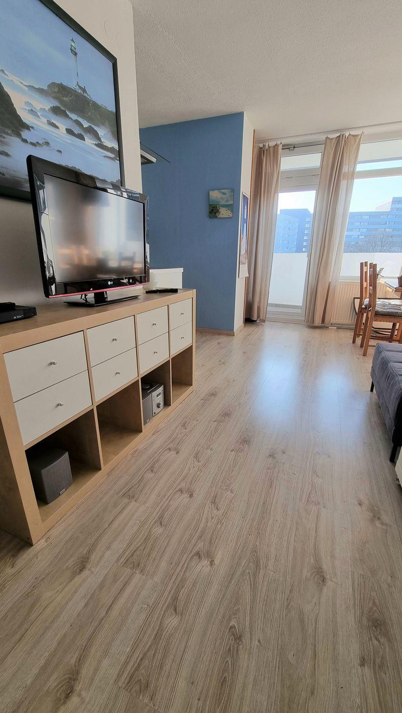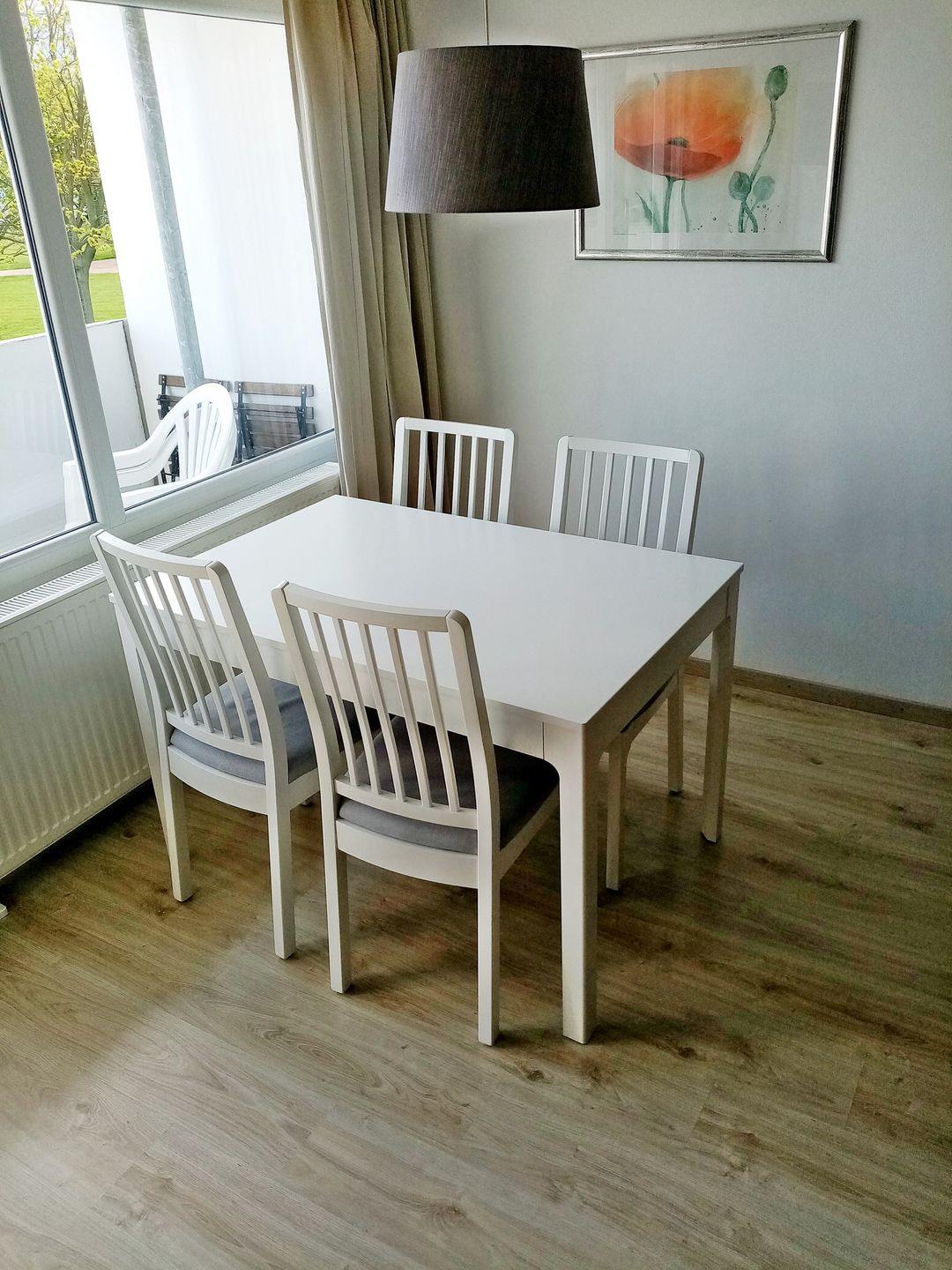 Verbringen Sie erholsame Urlaubstage in einer gemütlichen ausgestatteten Ferienwohnung im Ferienpark in Heiligenhafen. Auf ca. 43–45 m² im 1. Obergeschoss erwartet Sie ein durchdachtes Raumkonzept mit Platz für bis zu 4 Personen – ideal für Paare oder kleine Familien. Der helle Wohnbereich mit komfortabler U-Couch lädt nach einem Tag am Meer zum Entspannen ein. Für Unterhaltung sorgen ein 55-Zoll Smart-TV, Blu-Ray/DVD-Player, Kompaktanlage sowie kostenfreies WLAN. Am großzügigen Esstisch am Fenster genießen Sie gemeinsame Mahlzeiten oder planen Ihre nächsten Ausflüge entlang der Ostsee.