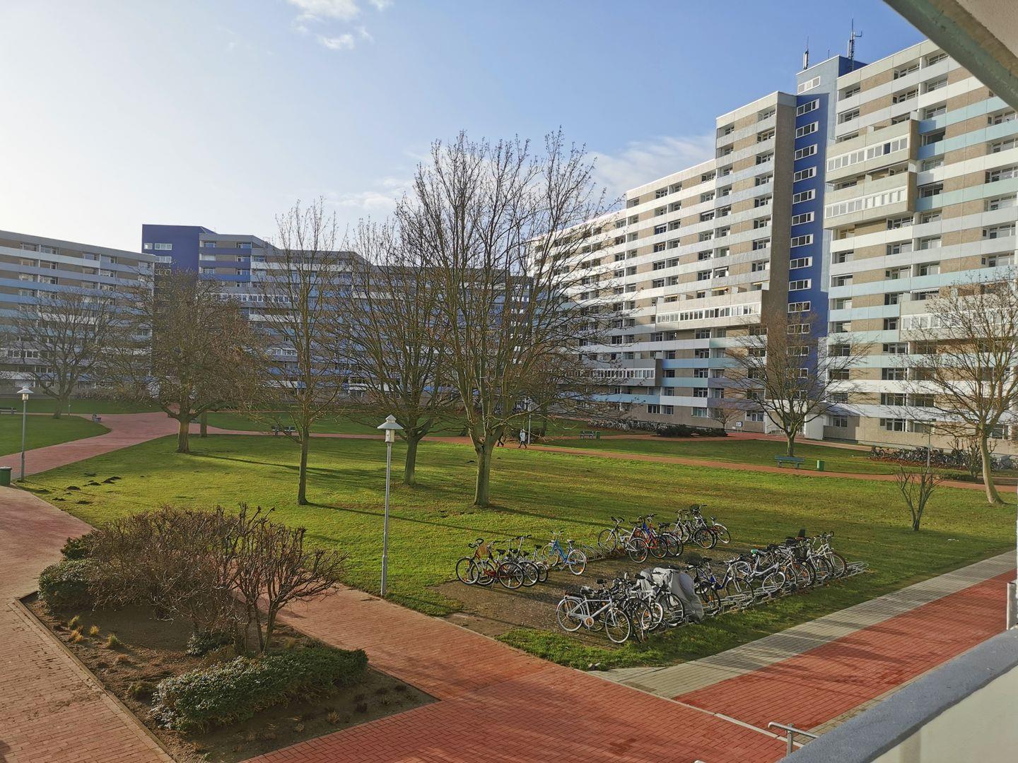 Ein überdachter, möblierter Balkon mit Blick in den gepflegten Innenhof lädt zum Verweilen ein – ob beim Frühstück an der frischen Luft oder einem entspannten Abend. Zur Wohnung gehören ein kostenloser Privatparkplatz (Nr.5), eine Schrankenkarte sowie ein abschließbarer Fahrradraum. Ein Aufzug im Gebäude und ein Kinderhochstuhl machen den Aufenthalt besonders bequem.