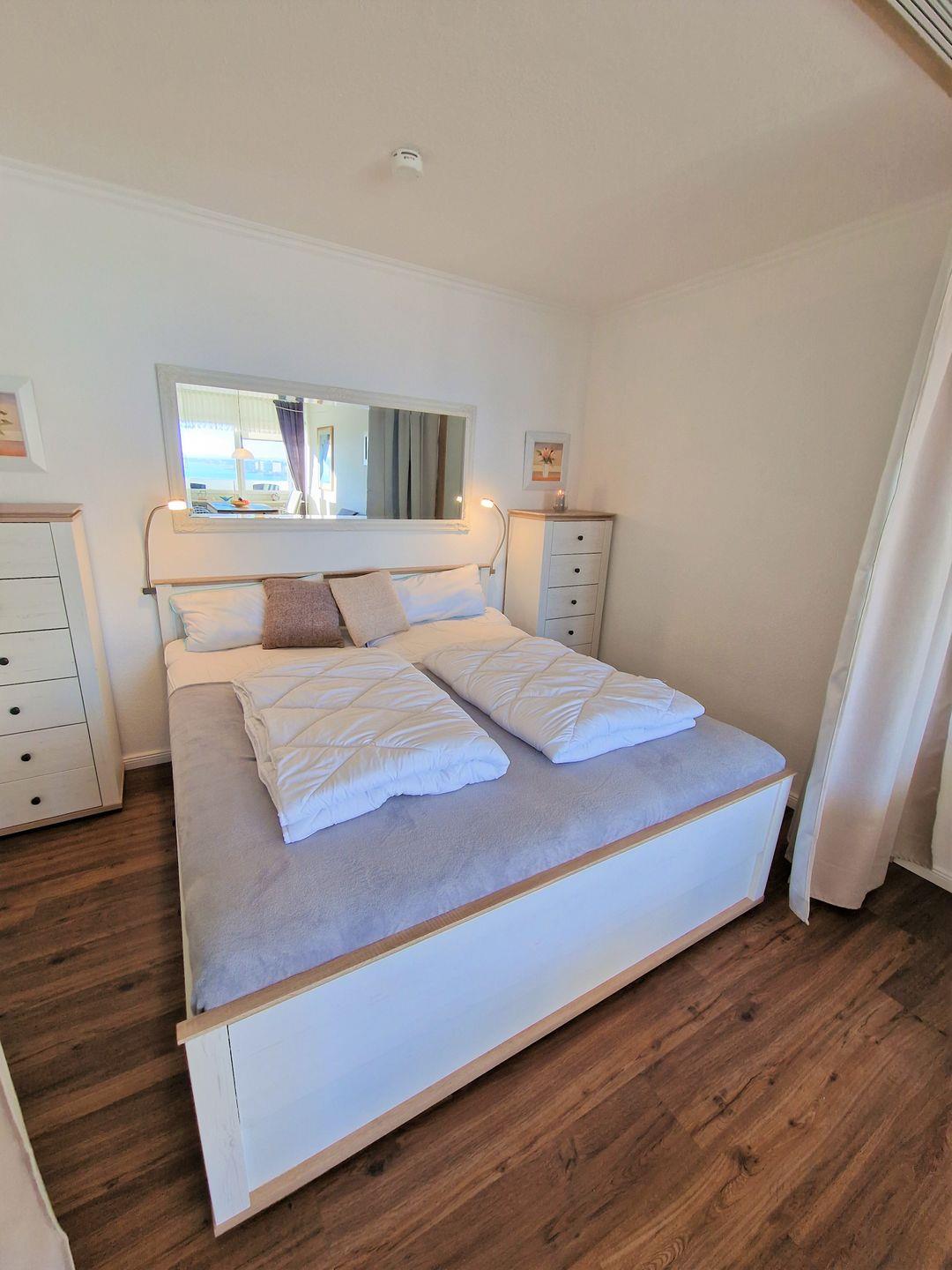 Der Schlafbereich mit Doppelbett (getrennt durch einen Vorgang, 2x90*200, hoher Einstieg) wird Sie träumen lassen.