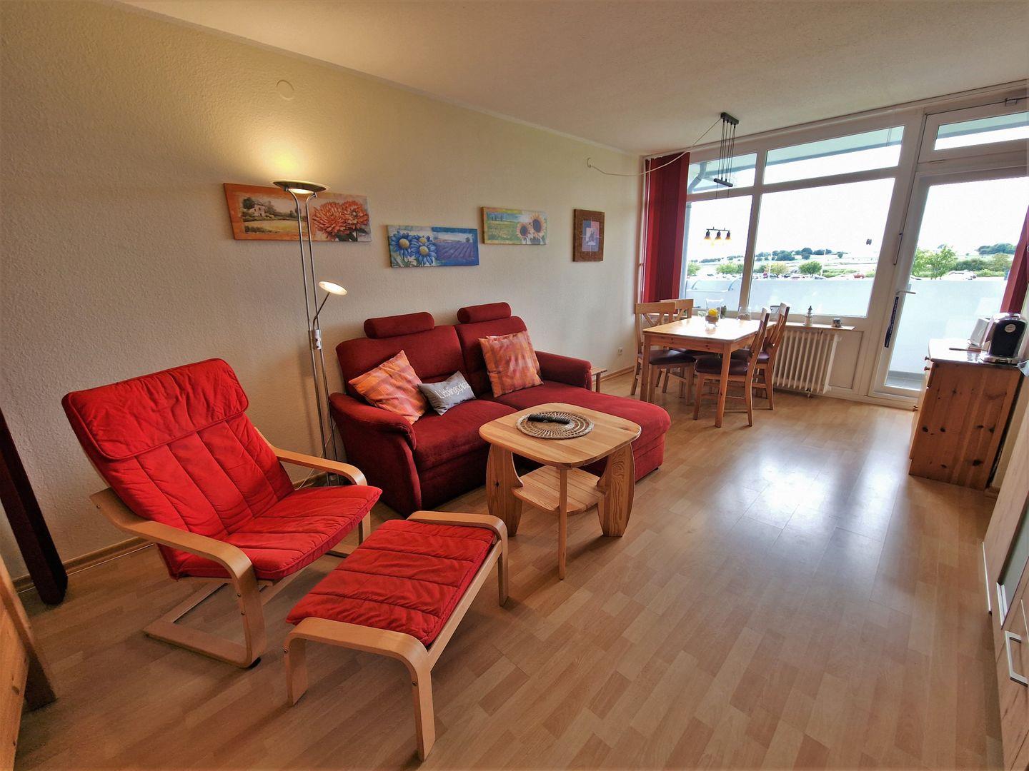 Schöne und sonnige Ferienwohnung in der 1. Etage mit Balkon zur Westseite und Blick Richtung Steilküste und Leuchtturm.