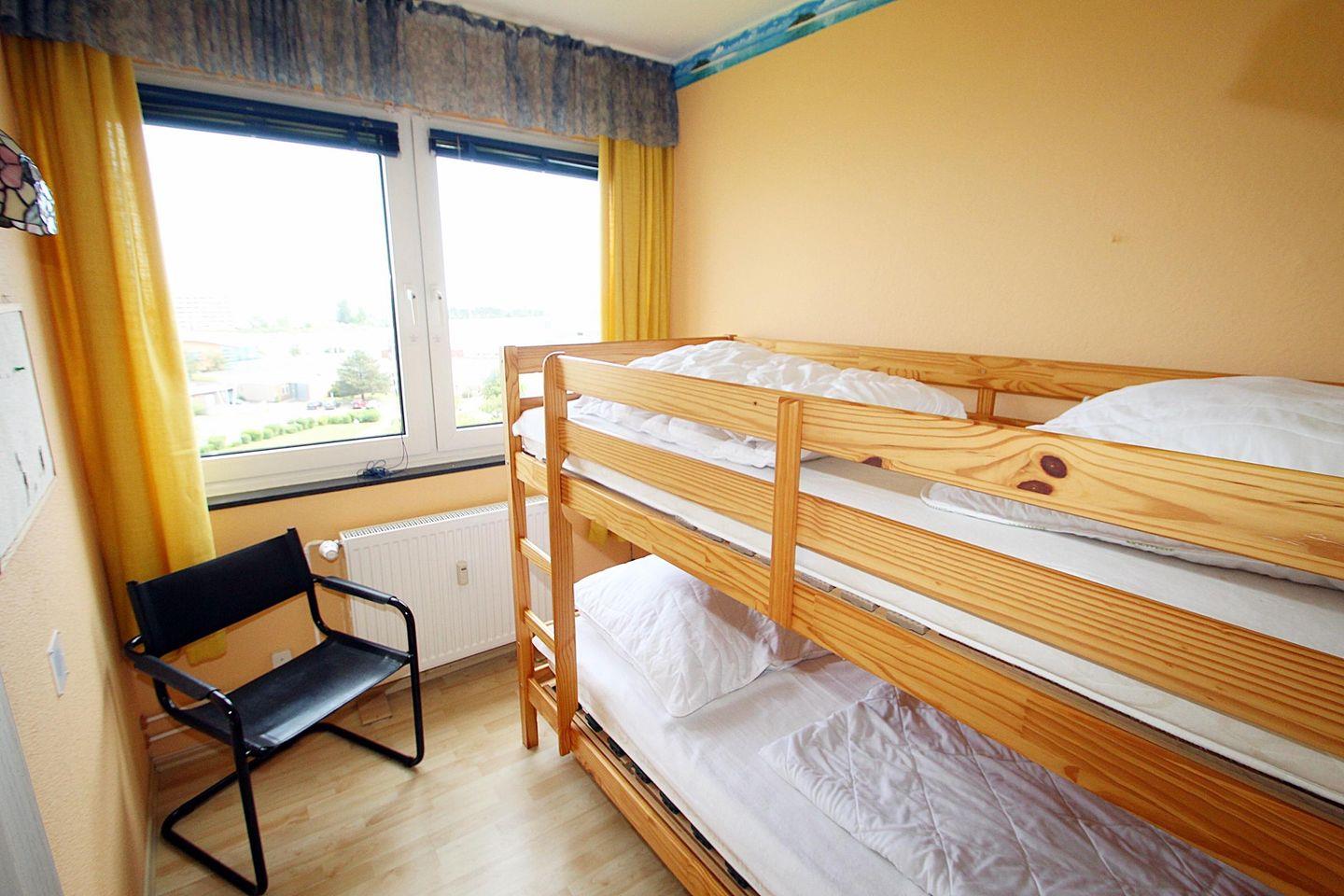 Ein abgetrenntes Schlafzimmer mit Boxspringbett (180/200cm) und ein Kinderzimmer m. Etagenbett bieten für 2 od. 3 Erwachsene und bis 2 Kinder genug Platz für einen schönen Urlaub.