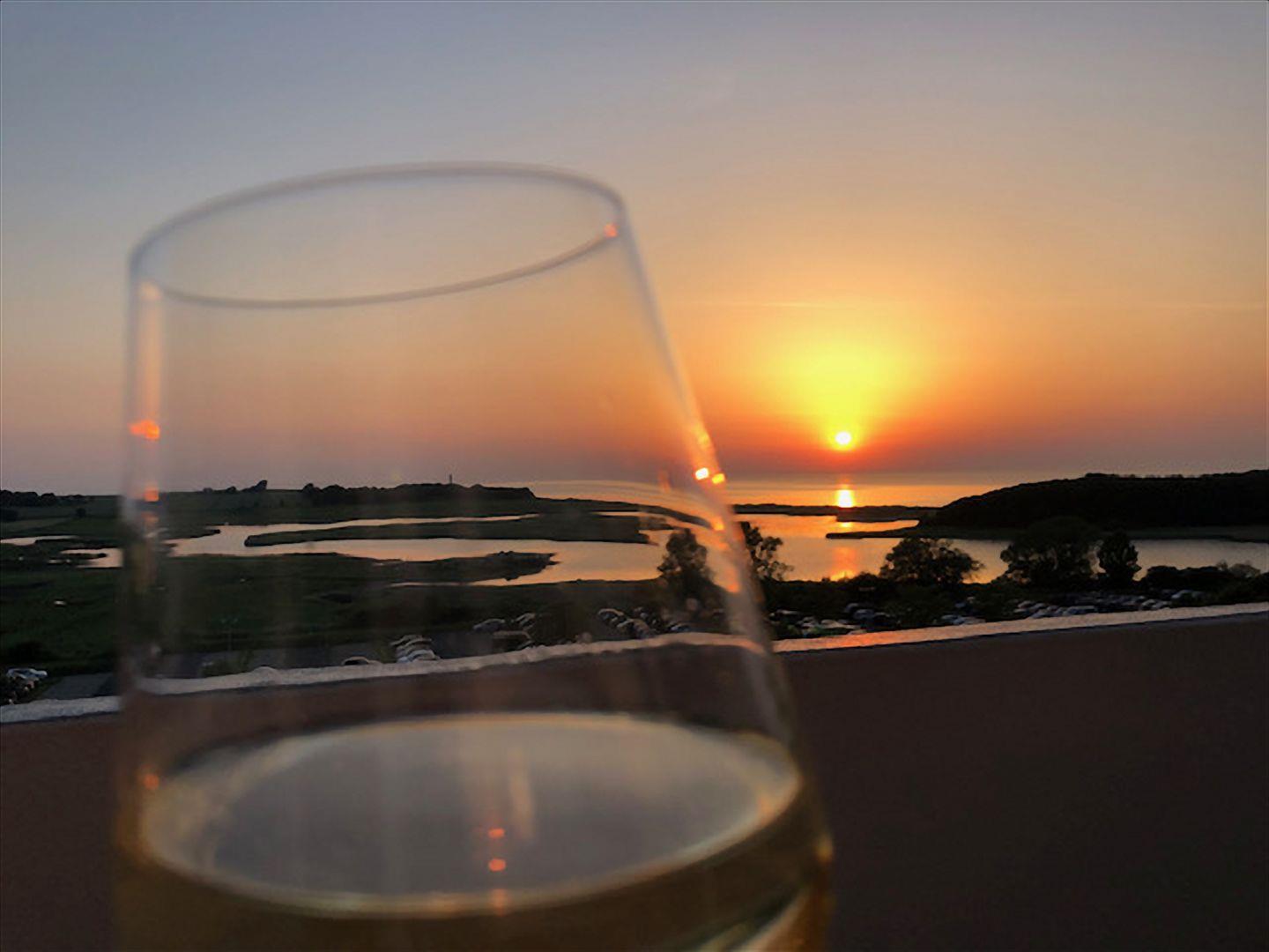 Vom Balkon, wo ebenfalls ein Tisch und Sitzgelegenheiten gegeben sind, lässt sich die tolle Aussicht in Richtung Westen genießen.