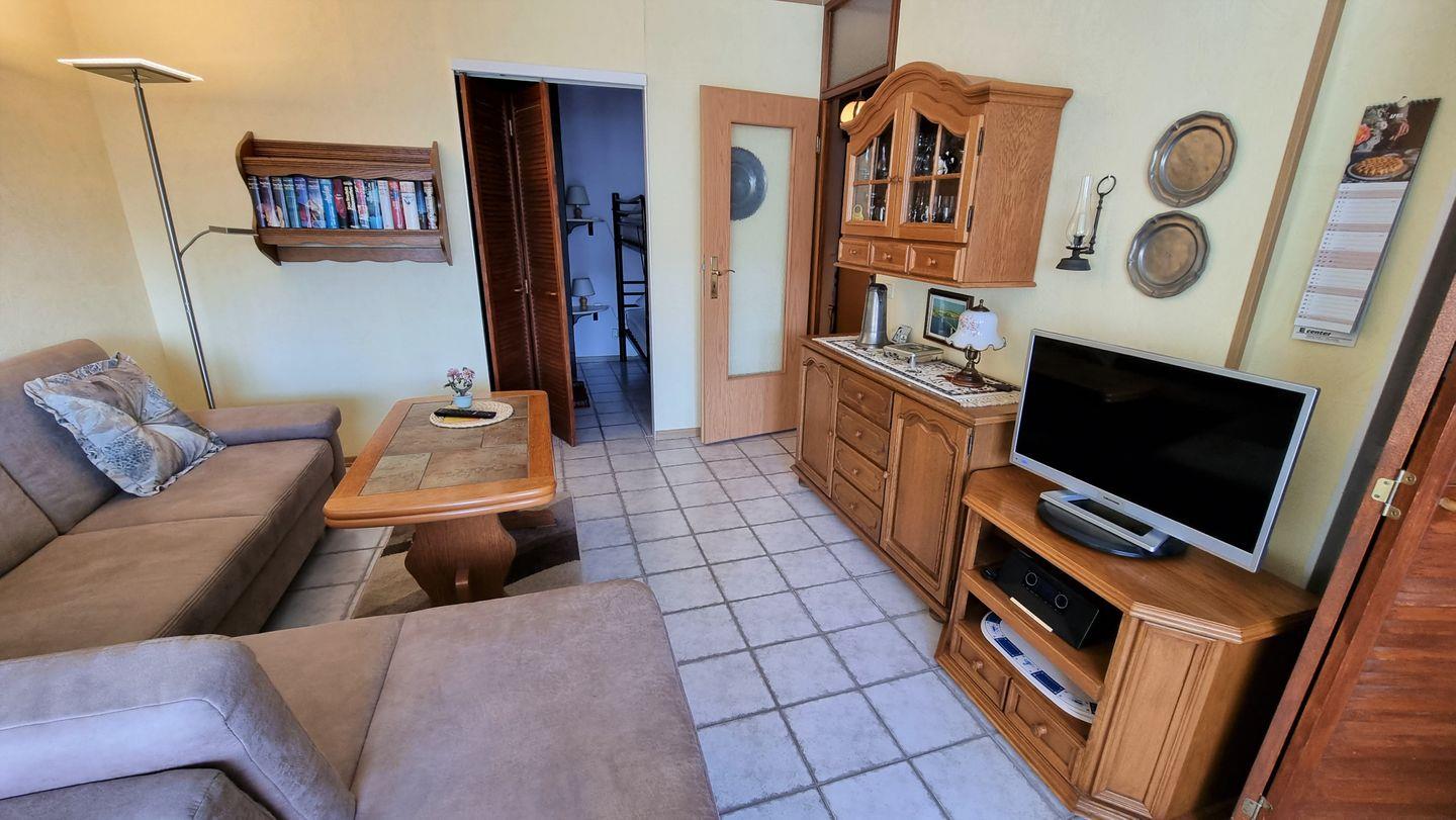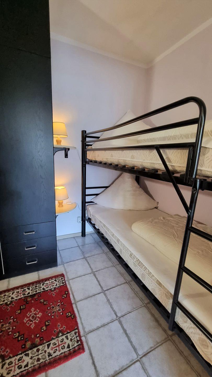 Die Ferienwohnung C04-002 im Ferienpark Heiligenhafen liegt im 4. Obergeschoss und bietet auf rund 45?m² alles, was für einen komfortablen Aufenthalt nötig ist. Der gepflegte Wohn- und Essbereich ist gemütlich eingerichtet und verfügt über eine Eckcouch, einen Flachbild-TV und ein Internetradio. Die Essecke am Fenster lädt zu entspannten Mahlzeiten ein. Die Wohnung verfügt über zwei Schlafbereiche. Im ersten Schlafbereich, der früher das Kinderzimmer war, stehen zwei Einzelbetten (0,9 x 1,9m und 0,9 x 2m) und ein kleiner Nachttisch. Ein zu öffnendes Fenster sorgt für frische Luft. Der zweite Schlafbereich, der sich im ehemaligen Schlafzimmer befindet, ist mit einem großen Etagenbett ausgestattet. Zwei geräumige Kleiderschränke sowie Spiele und Bücher runden das Angebot ab. Die offene Küche ist komplett ausgestattet, unter anderem mit Ceranfeld-Herd, Mikrowelle mit Grillfunktion, Kaffeemaschine, Wasserkocher und Kühlschrank mit Gefrierfach.