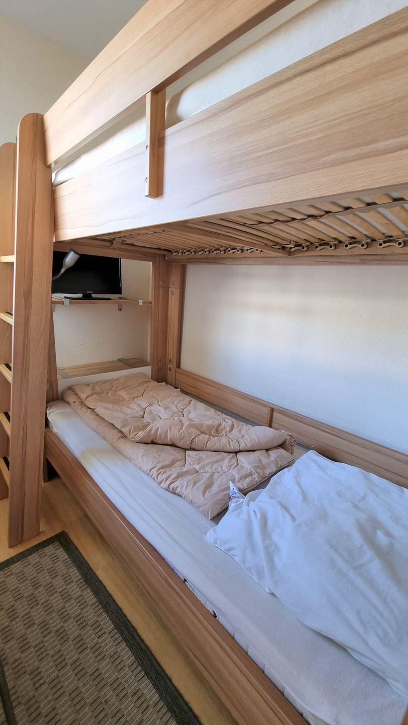 Das Kinderzimmer ist separat durch eine Tür zum Wohn/Essbereich getrennt und mit einem Etagenbett (auch für erw. Personen geeignet) ausgetattet. Auch hier steht ein kl. LCD-TV mit integriertem DV-Player zur Verfügung.