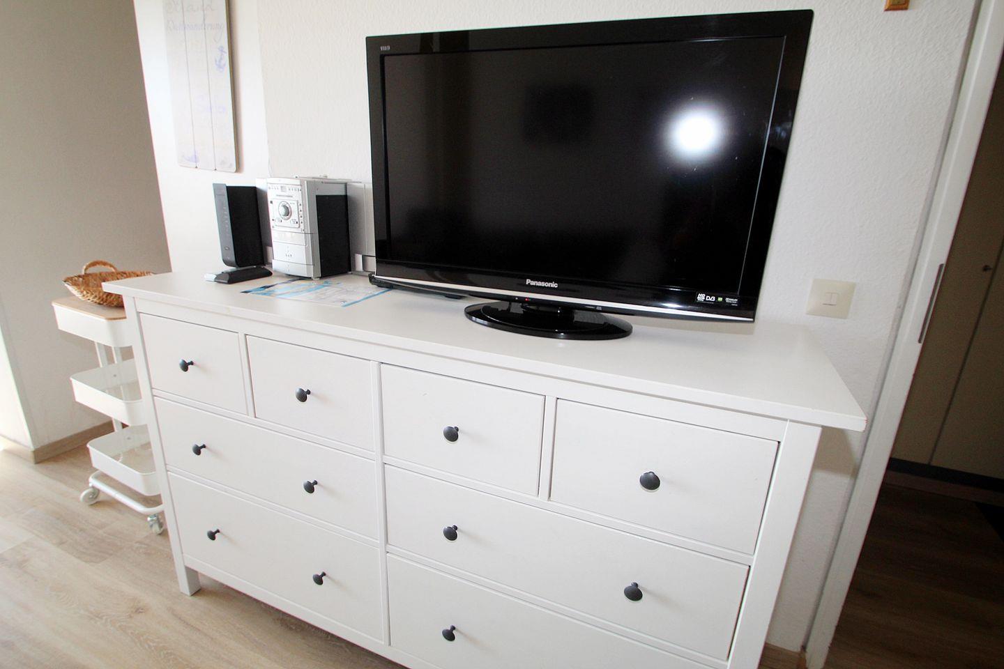 Ebenso haben wir durch große Kommoden für viel Stauraum gesorgt.