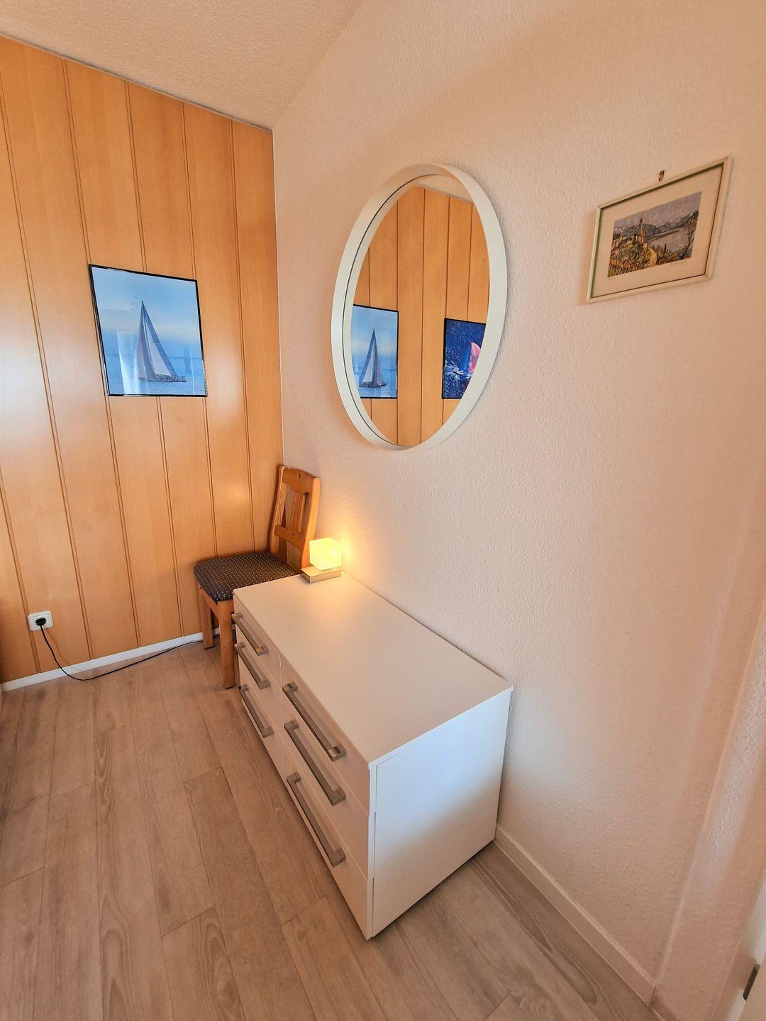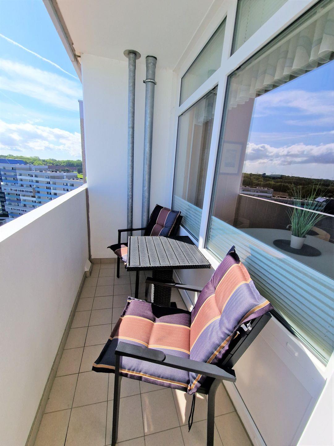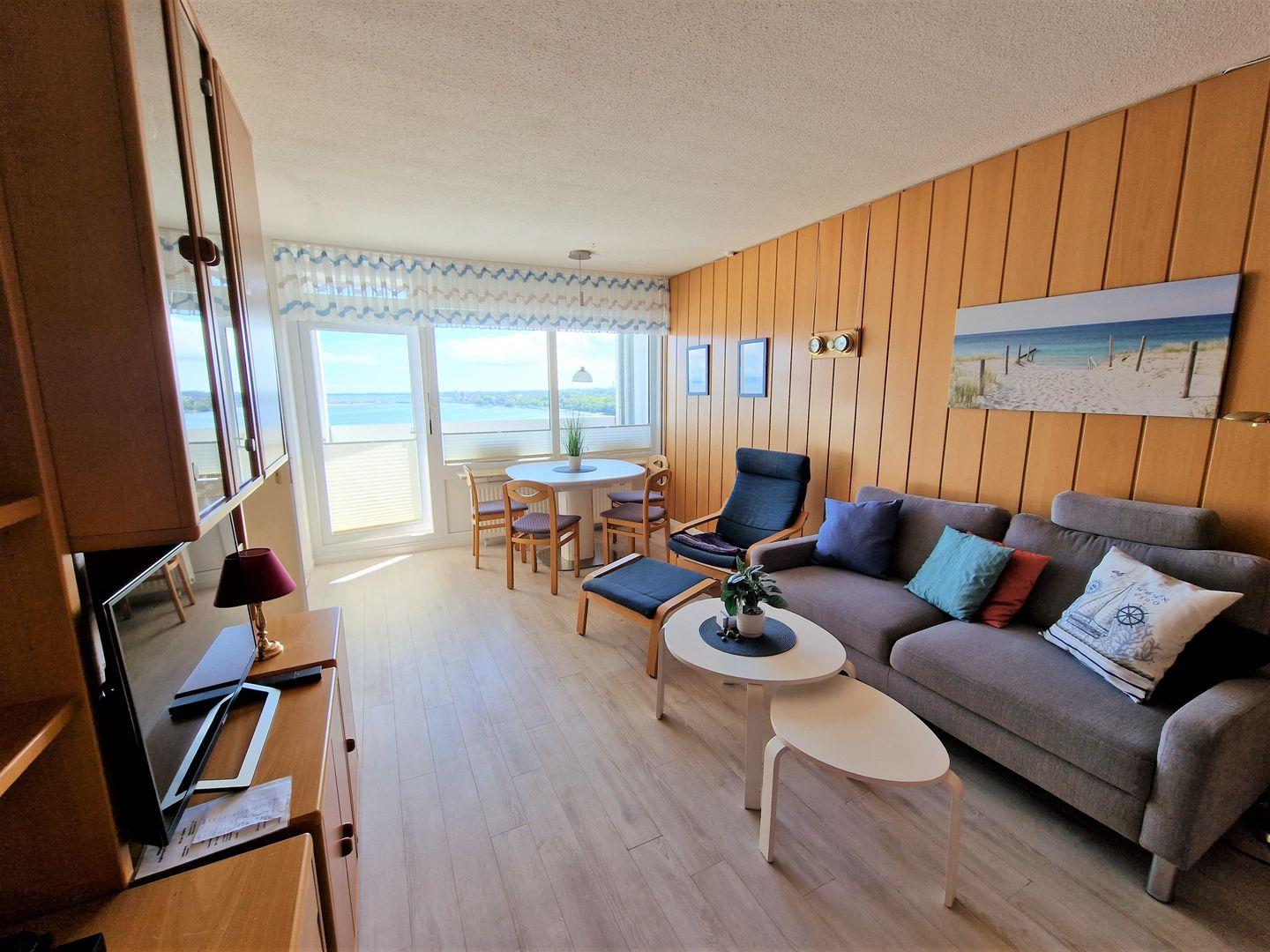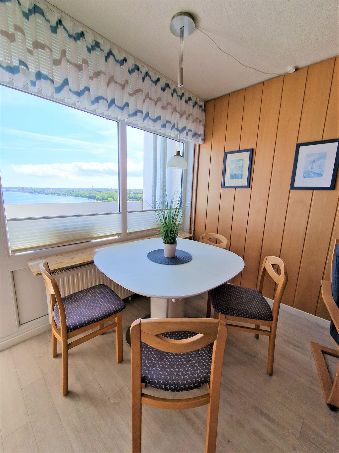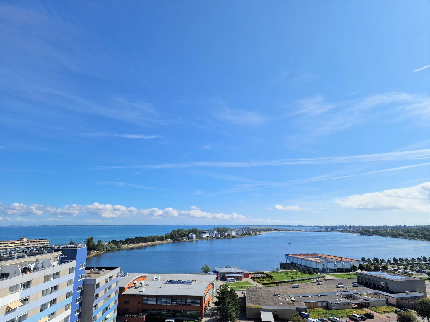 Schöne und sehr gepflegte helle Ferienwohnung in der 13. Etage mit Balkon einem tollen Blick über den Binnensee und die Ostsee direkt auf die Fehmarnsundbrücke!