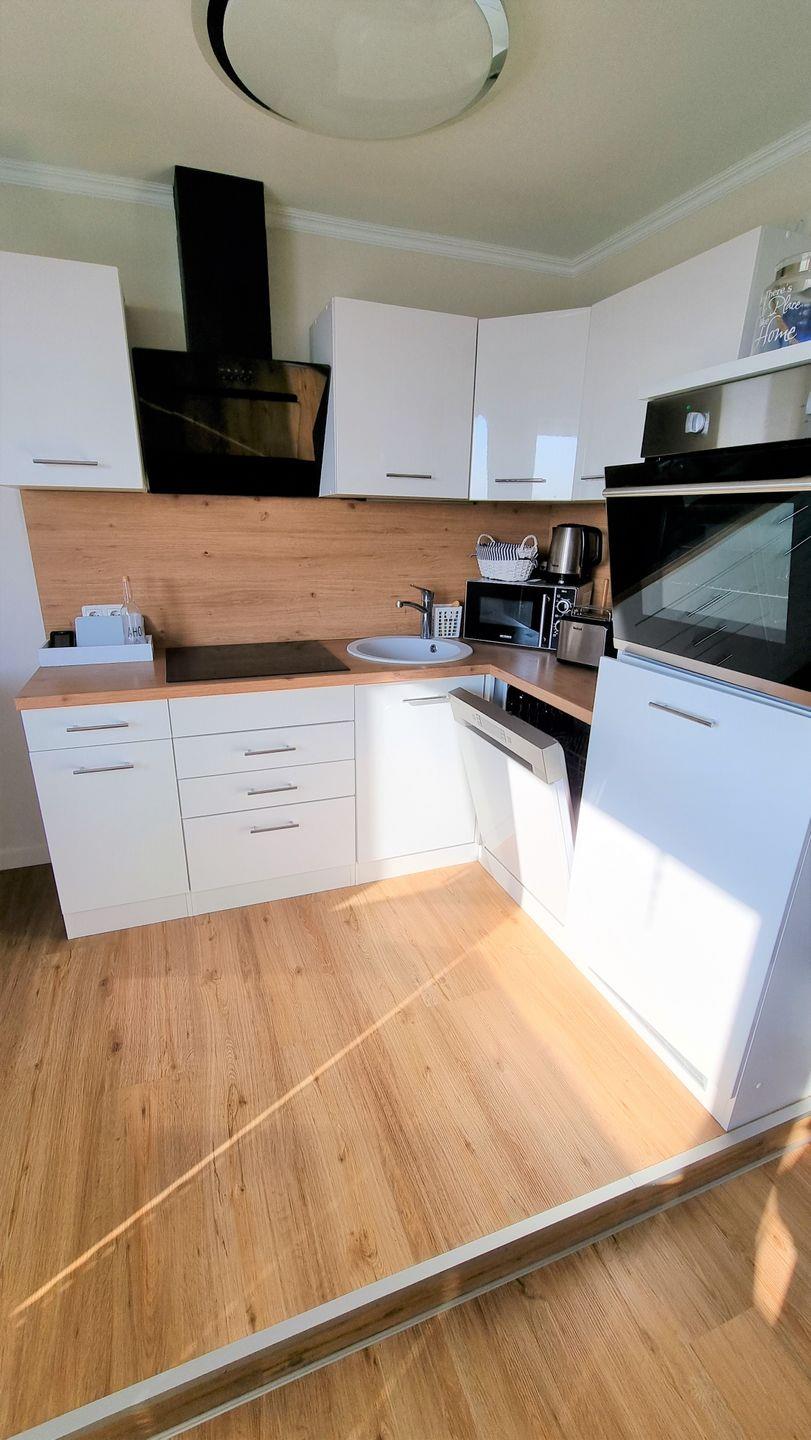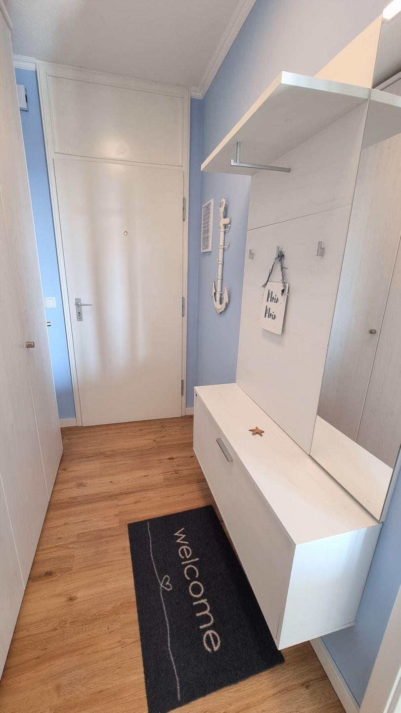 Ahoi und herzlich willkommen in dieser liebevoll eingerichteten, maritimen 2-Zimmer-Ferienwohnung in Heiligenhafen! Das modern sanierte Apartment empfängt seine Gäste im nordischen Stil mit warmen Laminatböden in Holzoptik und vielen liebevollen Details – ein Ort, an dem man sich sofort wohlfühlt.