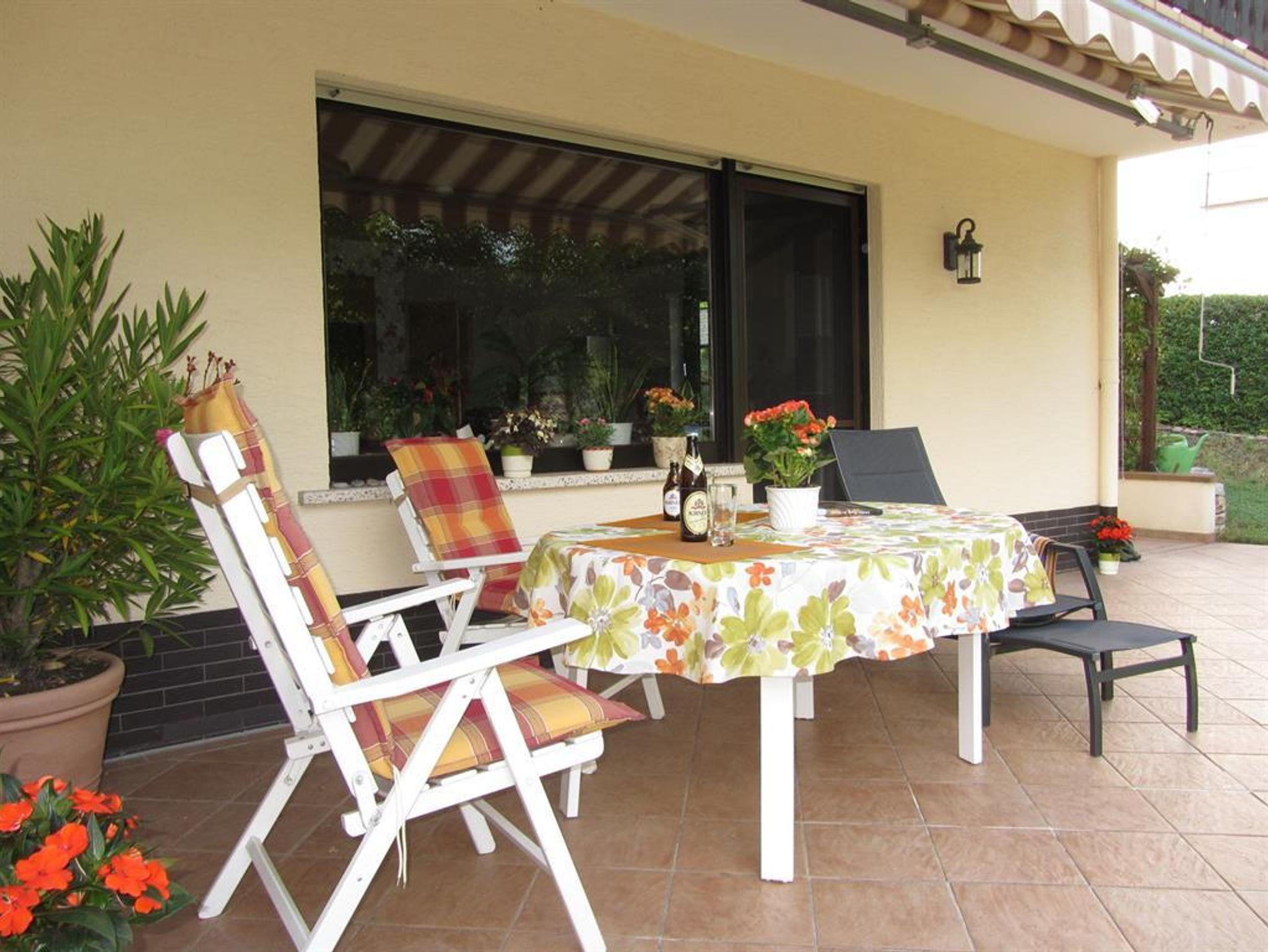 Sitzecke auf der Außenterrasse mit Markise.