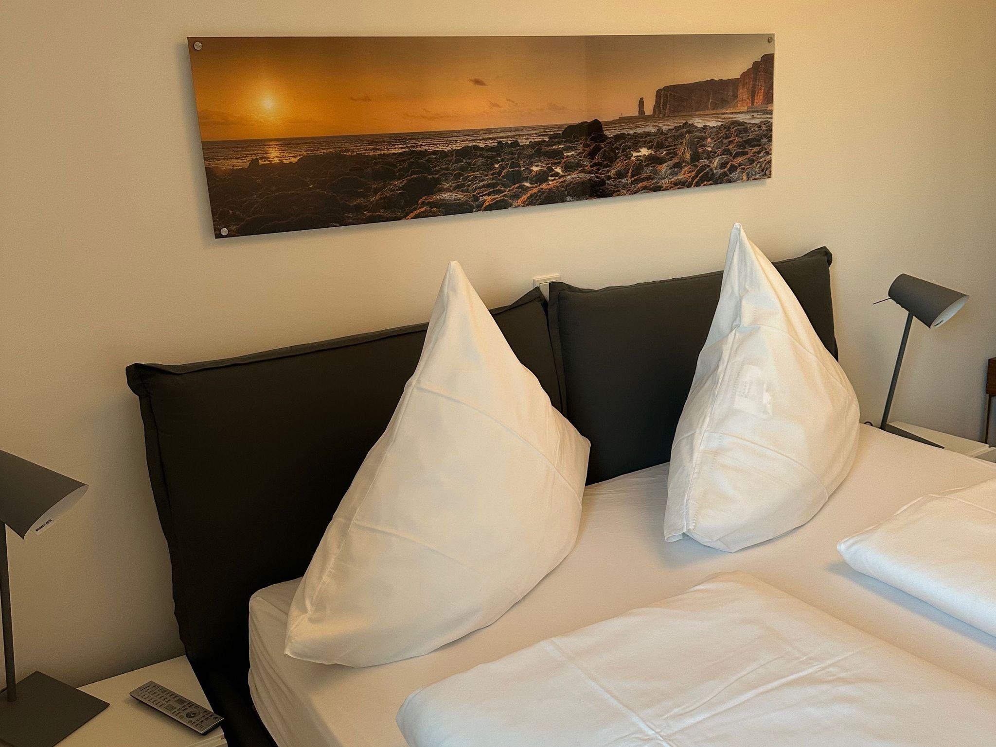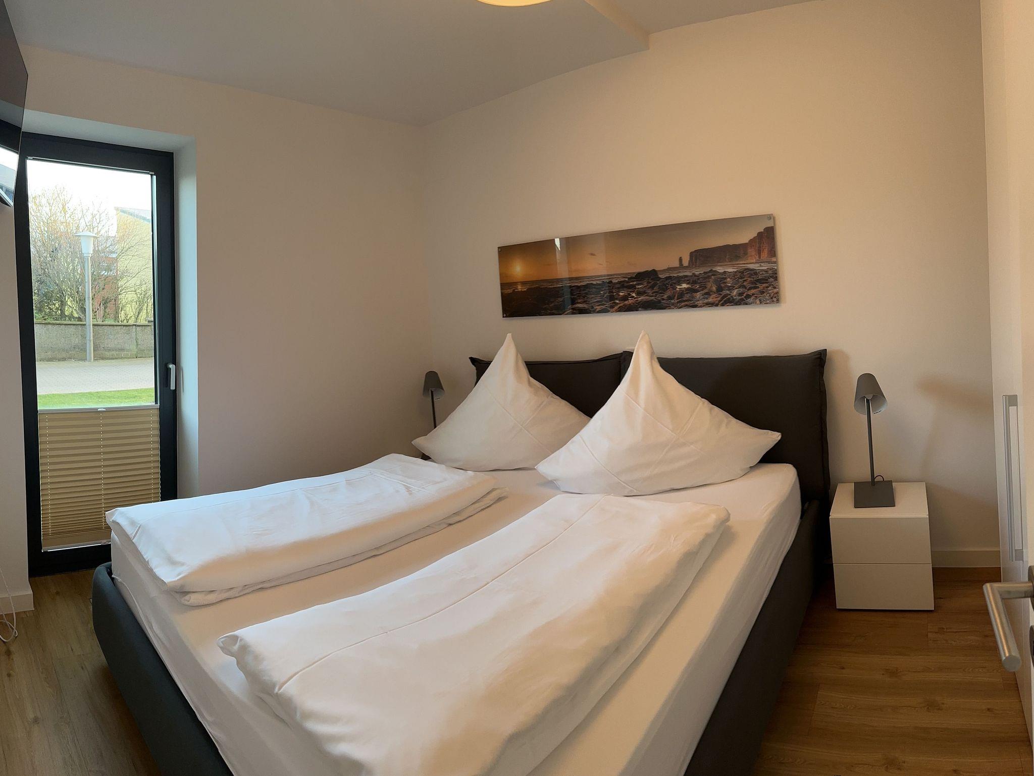 Die luxuriöse Wohnung hat ca. 58 qm Wohnfläche im Erdgeschoss. Der Wohnbereich verfügt über eine offene, komplett ausgestatte Küche mit Essplatz Und Zugang zur Terrasse mit einem unverdauten Blick auf die Nordsee und das grüne Oberland. Eine zweite Terrasse ist auf der Südseite mit Blick zum Leuchtturm. Duschbad und WC sind separat. WLAN, 2 x Flach-TV und Radio-Dockingstation stehen zur Verfügung. Bettwäsche und Handtücher sind inklusive und werden bei längeren Aufenthalten gewechselt.