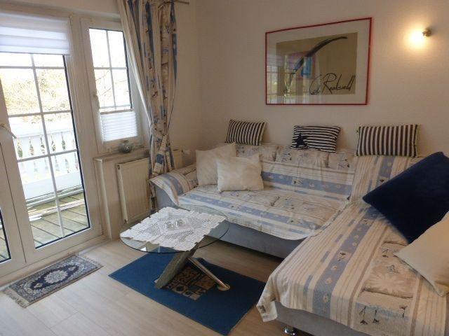 Die Wohnstube Ist hell und freundlich (Laminat Fussboden) eingerichtet.MIt anschließenden Balkon, nach vorn zur Straßenseite. Zwei Schlafzimmer .( Laminat Fussboden )Ein Schlafzimmer nach der Seite des Hauses mit zwei Einzelbetten. Das andere Schlafzimmer, nach hinten zum Garten gelegen mit einer Französichen Liege (1,60/2,00m). Eine Complett eingerichtete Küche mit Tisch und 4 Stühlen, (FUßboden ist mit PVC ausgelegt.) Und ein Duschbad mit WC und Waschbecken. Auch dieser Fußboden ist mit PVC ausgelegt. Das Wlan ist kostenlos.