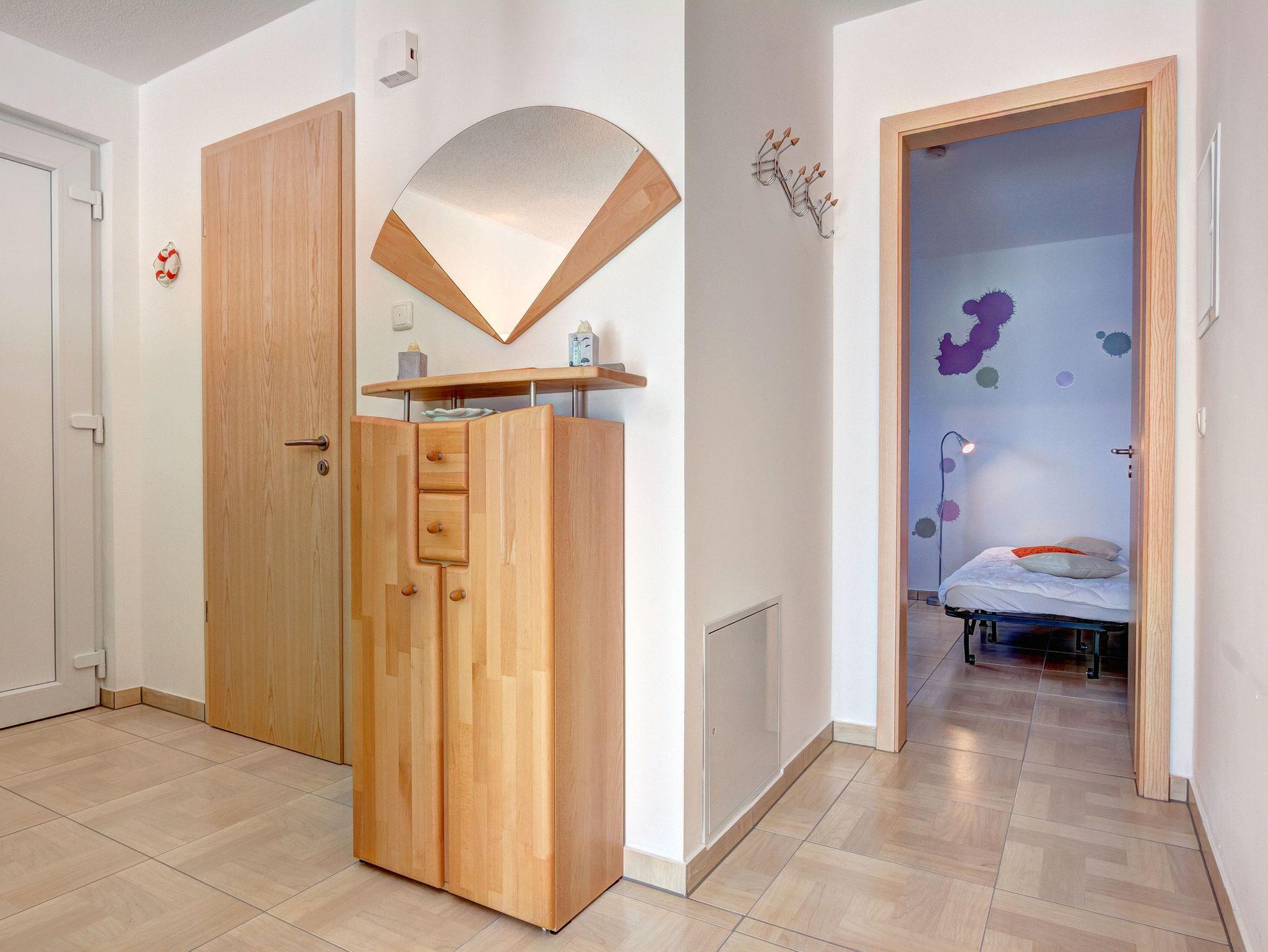 Im Schlafzimmer befindet sich ein großes Doppelbett sowie ein Einzelbett. Zusätzlich kann hier ein Kinderreisebett aufgestellt werden, welches gegen einen kleinen Aufpreis hinzugebucht werden kann. Die Bettwäsche für das Kinderreisebett können Sie gerne kostenpflichtig dazubuchen oder selbst mitbringen.