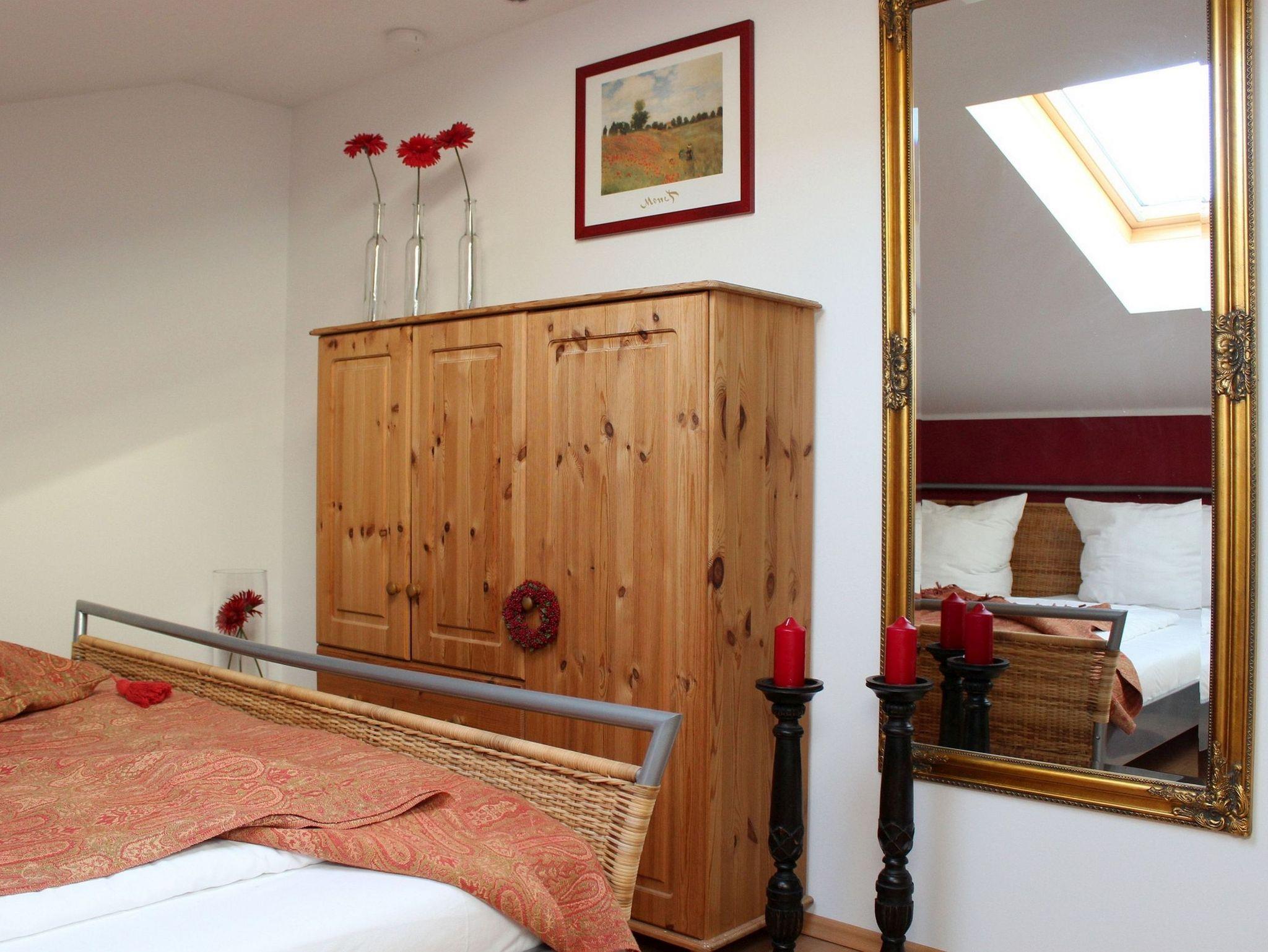 Die behaglich eingerichtete Ferienwohnung verfügt über 2 Schlafzimmer mit einem Doppelbett bzw. mit 2 Einzelbetten. Zusätzlich kann ein Klappbett, mit einer ordentlichen Matratze versehen, im Schlafzimmer eingeordnet werden, ohne dass es hier zu eng wird.