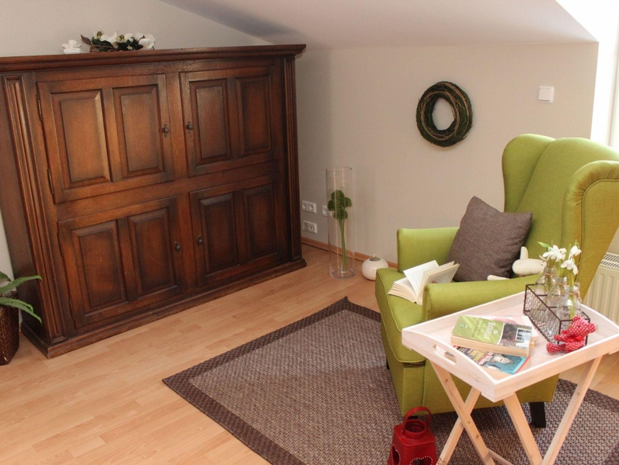 Die Ferienwohnung erschließt sich über 2 Etagen, welche durch eine offene Holtreppe miteinander verbunden sind und mit einer Kinderschutztür ausgestattet ist.