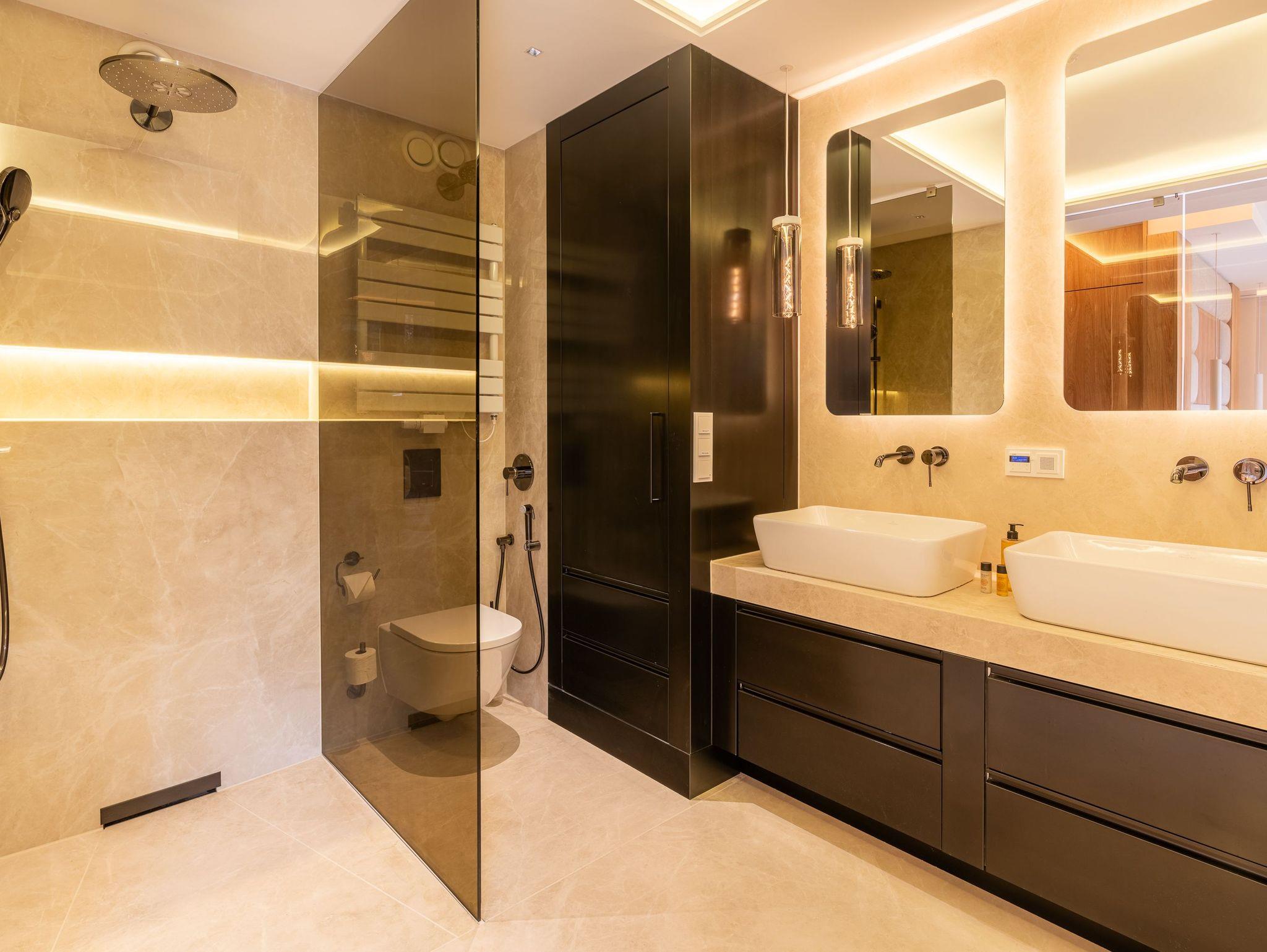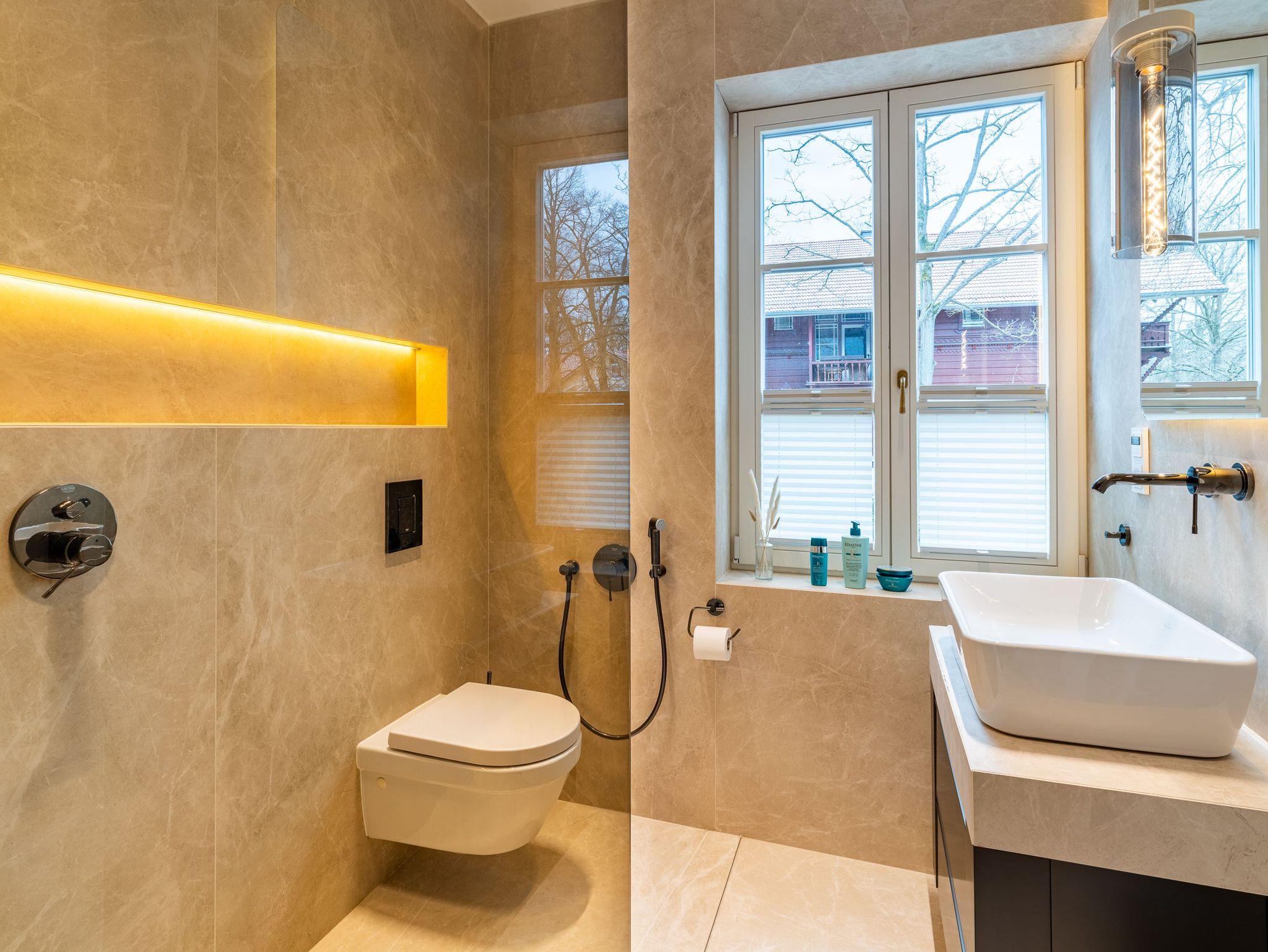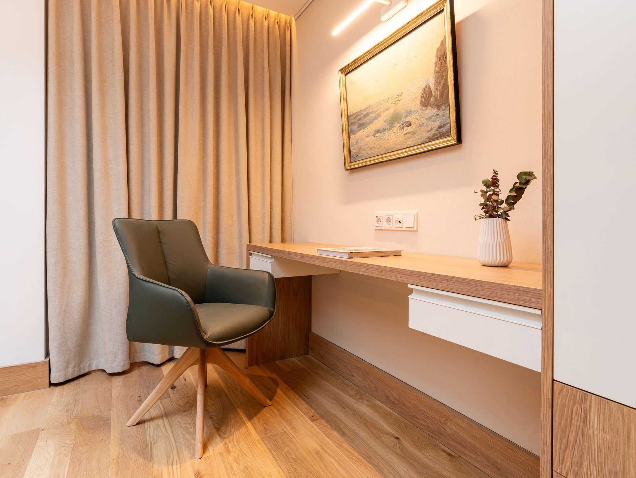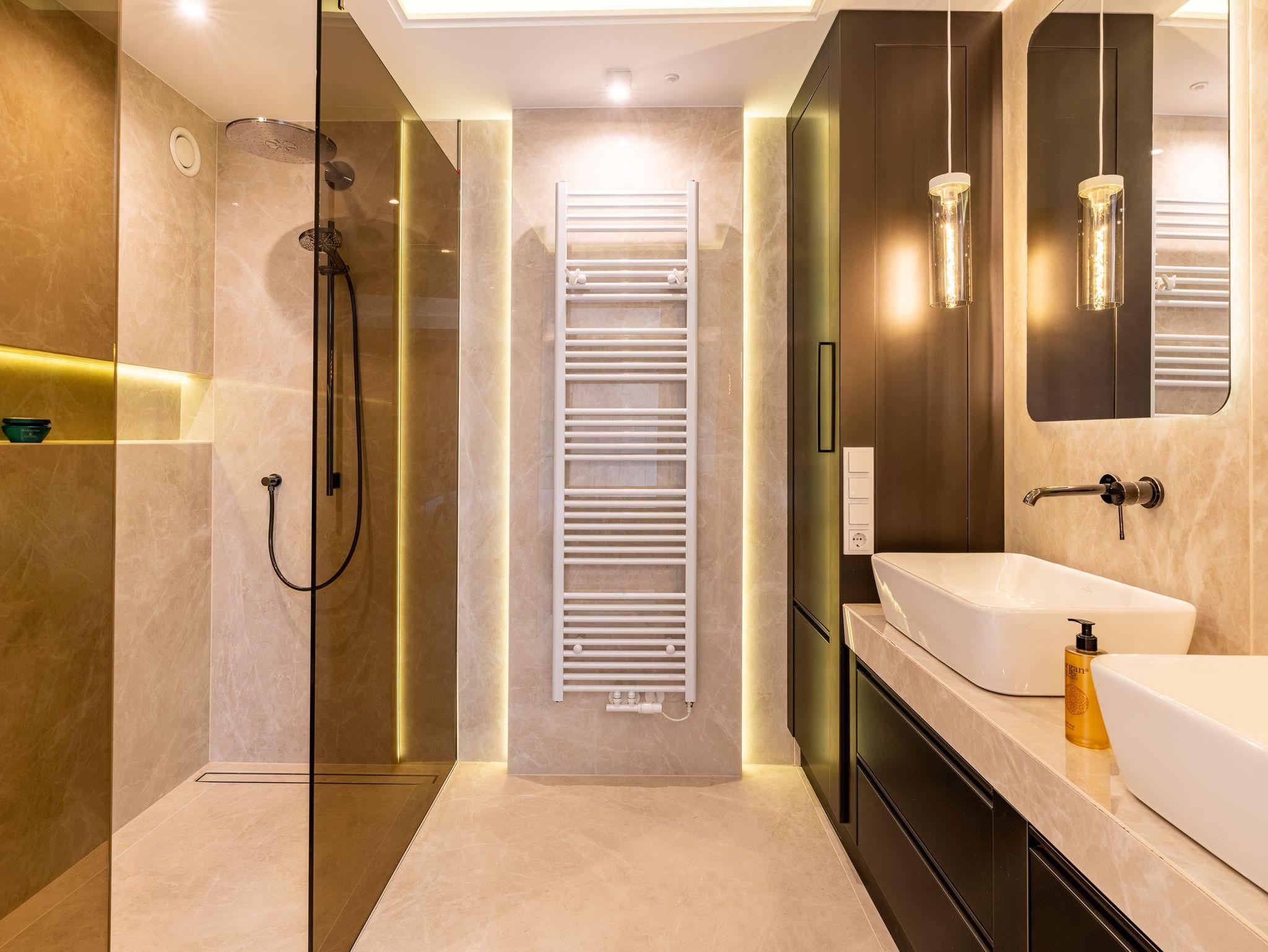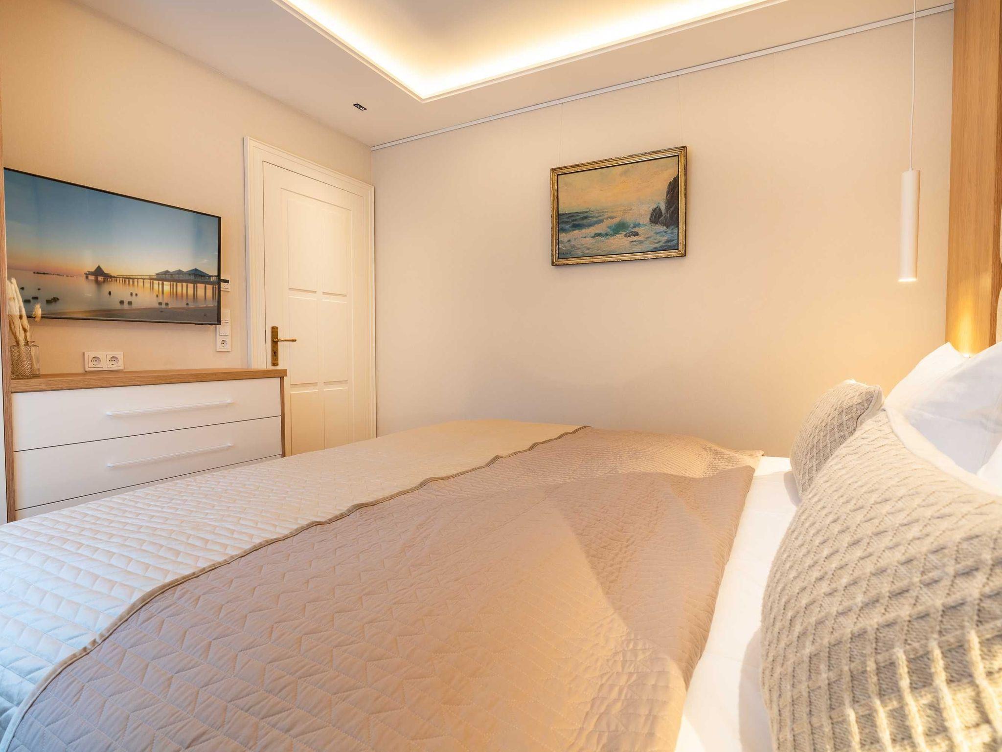 Kein Detail wirkt zufällig: Von der ersten Planung bis zur finalen Ausstattung wurden nahezu alle Möbel und Einbauten von einem regionalen Planungsbüro entworfen und in einer Tischlerei gefertigt. Edle Materialien, klare Linien und viel Liebe zum Detail verleihen dem Appartement seine unverwechselbare Handschrift.
