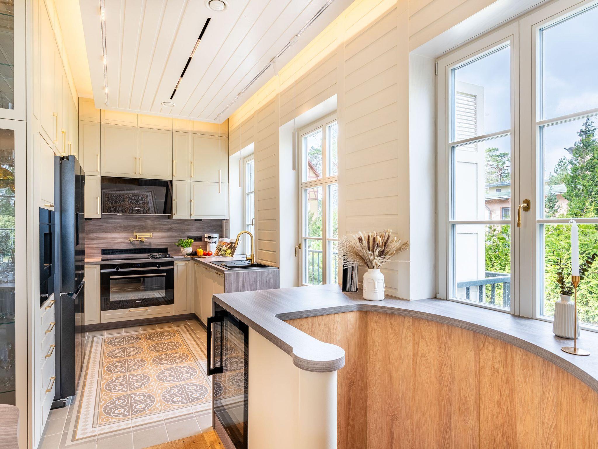 Die von einem regionalen Tischler gefertigte Küchenzeile mit angrenzendem Balkon überzeugt durch höchste Handwerkskunst und umfassende Ausstattung: Cerankochfeld, Backofen, Mikrowelle, Side-by-Side-Kühlschrank mit Wasser- und Eiswürfelspender, Weinkühlschrank, Geschirrspüler sowie ein Kaffeevollautomat ? ideal für den Espresso am Morgen oder den Cappuccino nach dem Strandspaziergang.