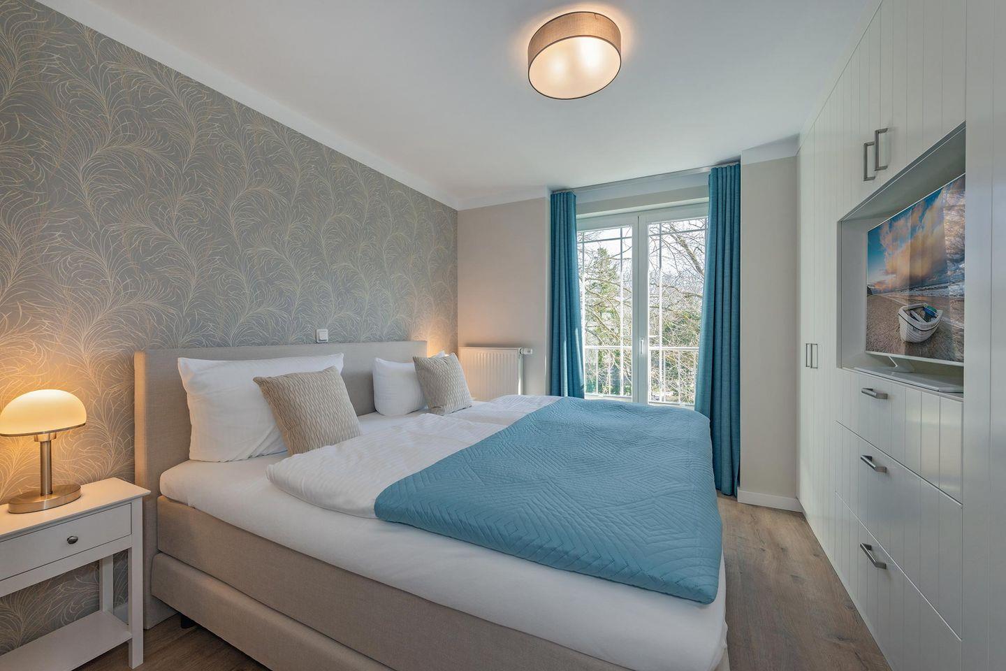 Die Wohnung verfügt über zwei einladende Schlafzimmer: Eines mit einem komfortablen Doppelbett (Liegefläche 1,80m x 2,00m), einem zweiten TV, Verdunklung und einem Einbauschrank, das andere mit einem gemütlichen, kleineren Doppelbett (Liegefläche 1,40m x 2,00m), ebenfalls mit Verdunklung und TV. Alle Fernseher sind Smart-TVs, die eine Nutzung mit persönlichen Netflix- oder Amazon-Zugängen ermöglichen, wobei der TV im kleinen Schlafzimmer ausschließlich WLAN-basiert ist. Ein helles Tageslichtbad mit Dusche und Fenster bietet zusätzlichen Komfort. Als haustierfreundliche Unterkunft empfängt die Wohnung auch Ihre vierbeinigen Begleiter herzlich. Für Ihre Bequemlichkeit steht ein Stellplatz in der Tiefgarage zur Verfügung.