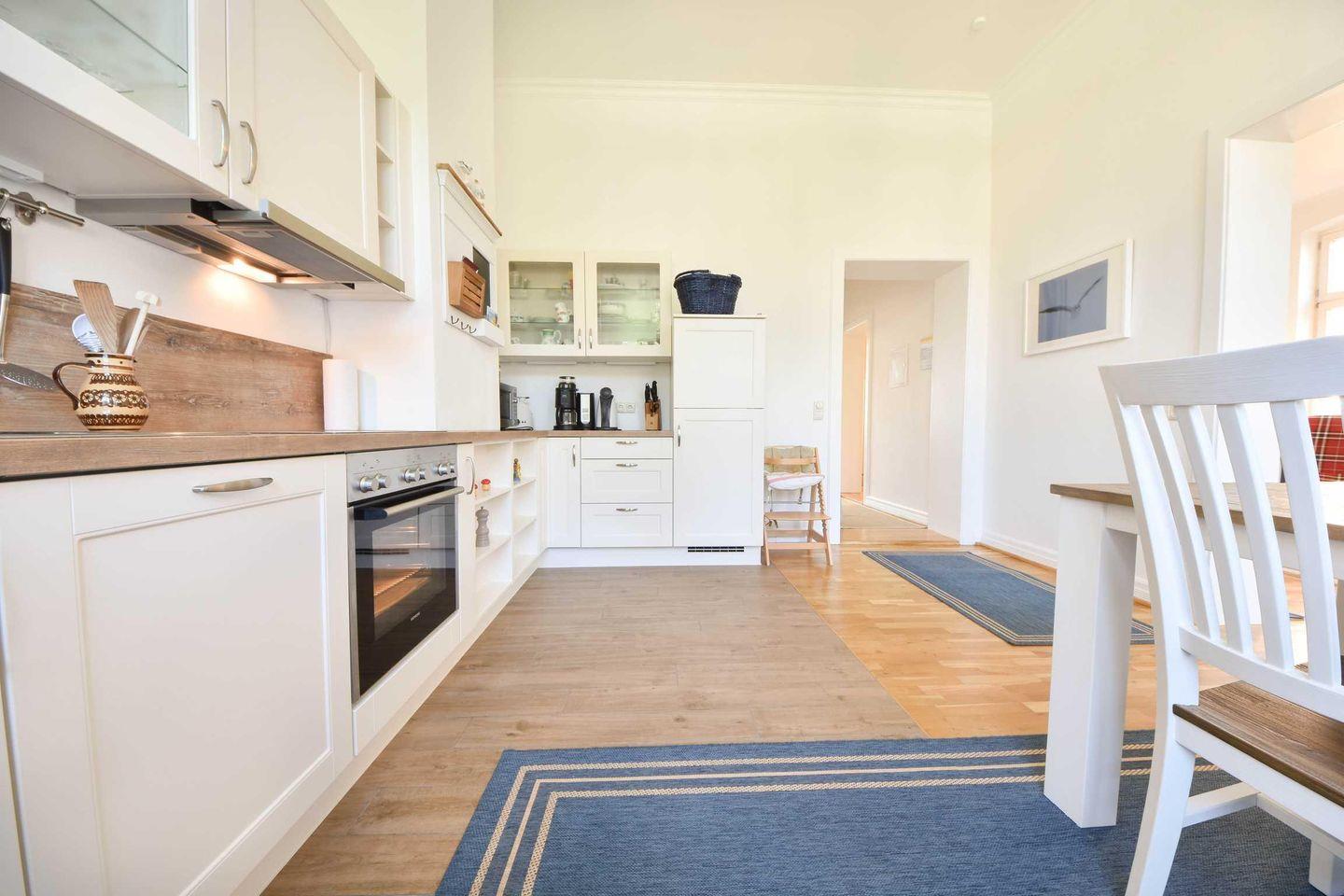 Diese großzügige Ferienwohnung besticht durch ihre stilvolle Einrichtung und bietet zwei Schlafzimmer mit Doppelbetten und Kleiderschränken. Das geräumige Wohnzimmer ist mit einem hochwertigen Heimkinosystem, Blu-ray-Player, Bose Surround Sound und einem Full-HD Flatscreen ausgestattet. Die Küche mit Essbereich ist vollständig eingerichtet. Das Badezimmer verfügt über eine Badewanne, Dusche und ein Gäste-WC. WLAN ist inklusive, ein Stellplatz am Haus steht zur Verfügung. Eine Waschmaschine im Keller kann gegen Gebühr genutzt werden. Für kleine Gäste gibt es ein Babyreisebett und einen Kinderhochstuhl.