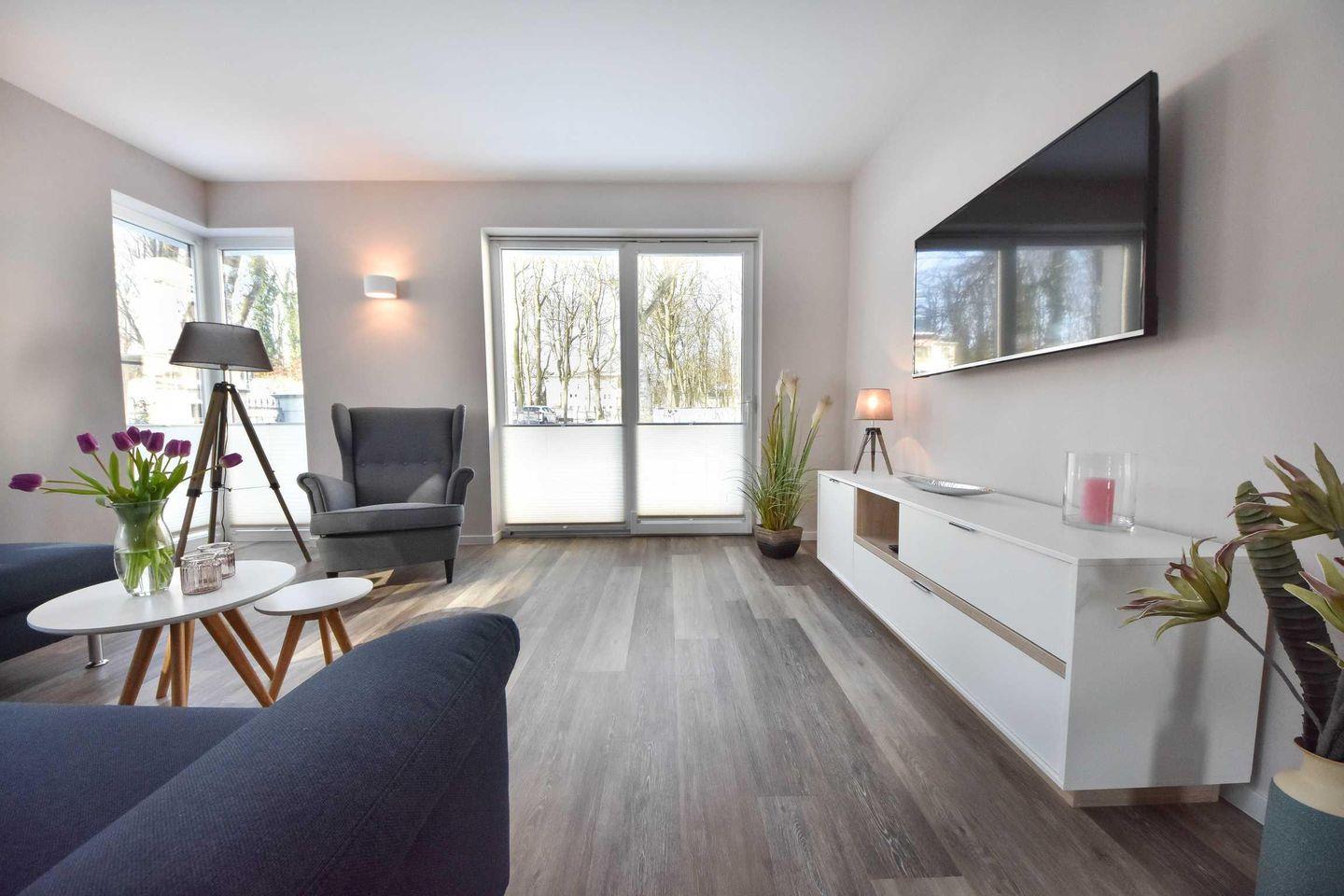 Diese moderne Wohnung im Hochparterre des Hauses besticht durch ihre gute Aufteilung und die hochwertige Ausstattung. Mit zwei Schlafzimmern bietet die Wohnung bequem Platz für vier Personen.