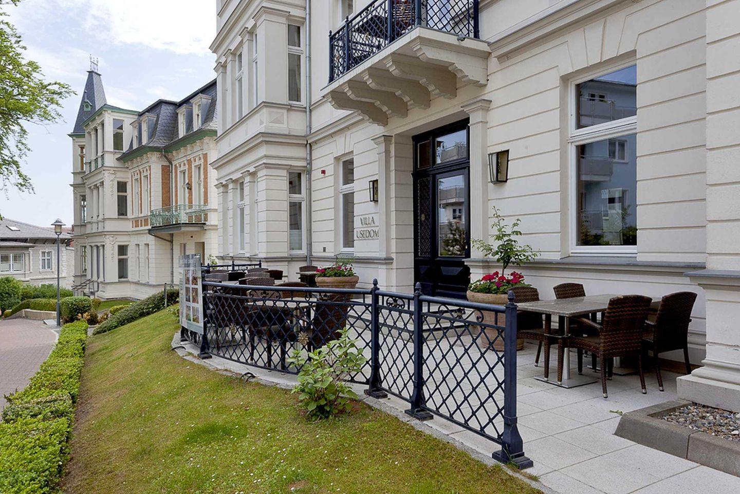 In der dazu gehörigen "Neubau-Residenz" Villa Usedom direkt nebenan befindet sich die Wohlfühlwelt Vitalis-Spa mit Schwimmbad, Finnischer Sauna (90°C) und Bio-Sauna (60°C).