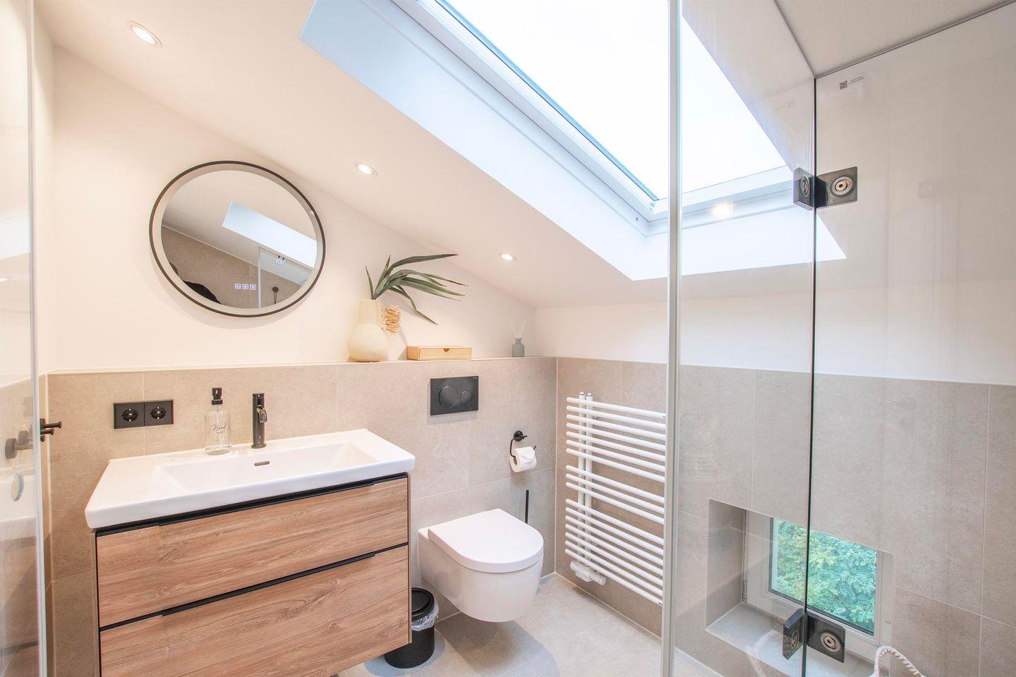 Das Badezimmer wurde in 2024 komplett saniert und erneuert. Die kleine Wellness Oase verfügt über allen Komfort, den Sie sich im Urlaub wünschen und ist neben WC und Waschtisch auch mit einer Dusche und einer Handtuchheizung eingerichtet.