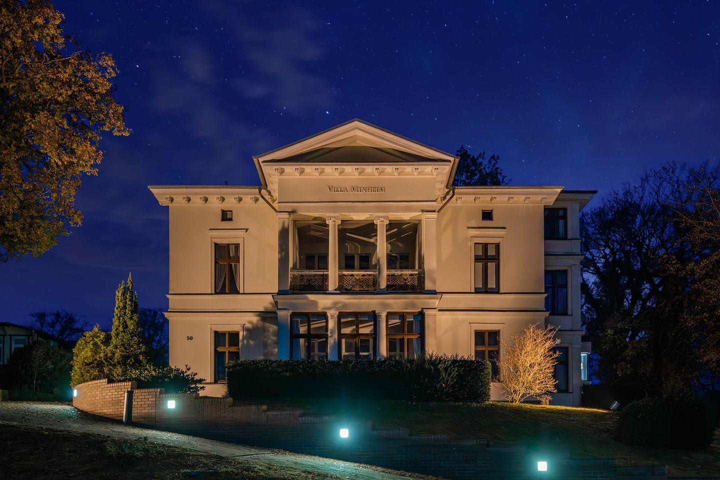 Die Villa Minheim befindet sich, einmalig in Szene gesetzt, auf einer kleinen Anhöhe in der Delbrückstraße des Seebades Heringsdorf. Sofern Sie eine Unterkunft in authentischer Kaiserbäder-Architektur und ruhiger Lage sowie mit kurzen Entfernungen zu Strand, Promenade und Geschäften wertschätzen, werden Sie hier Ihr ideales Urlaubsdomizil finden.