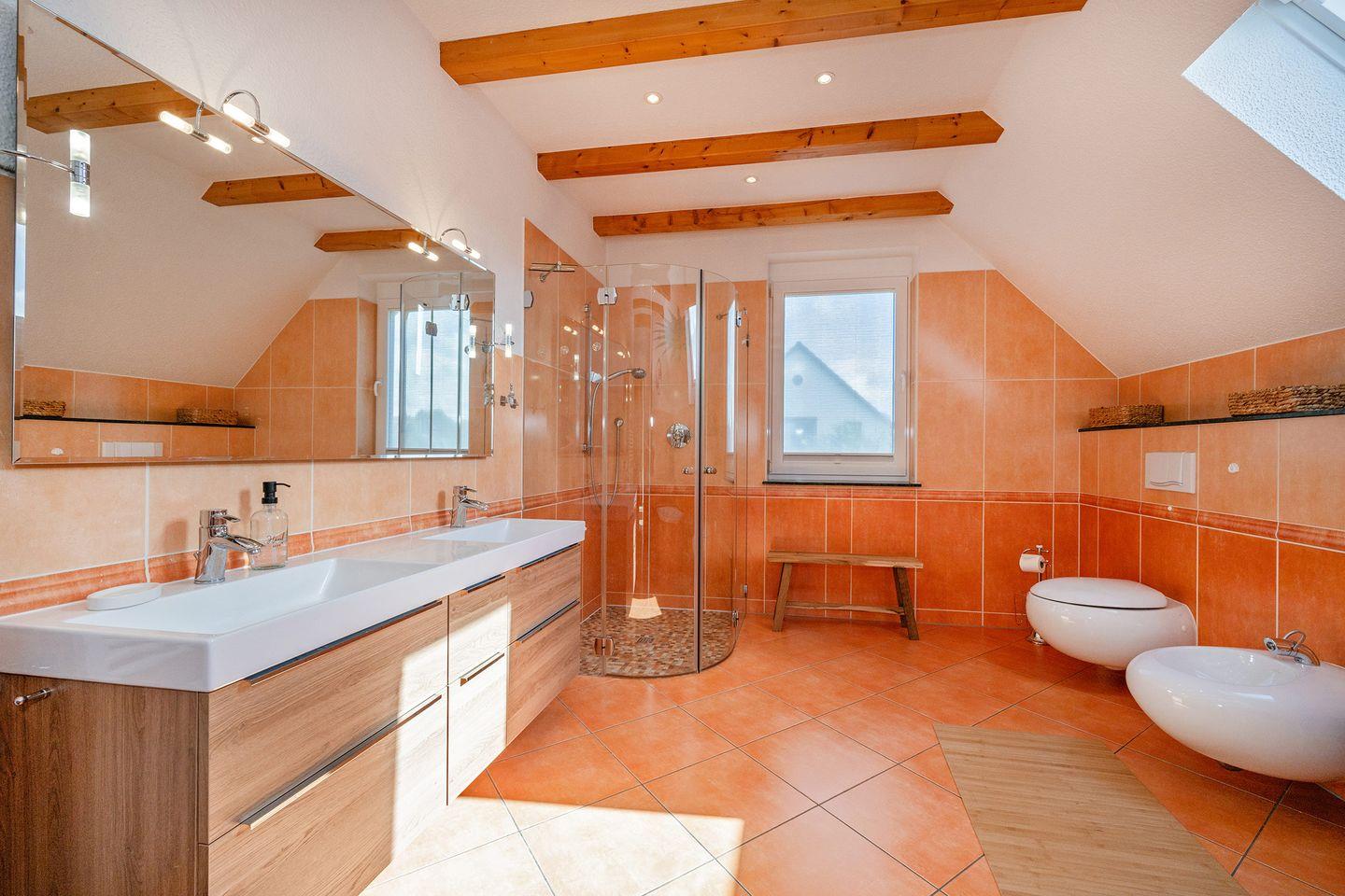Das High-Speed-Internet des Hauses (500mbits) nutzen Sie selbstverständlich kostenfrei. Im Keller des Hauses befinden sich Waschmaschine und Trockner, sowie ausreichend Möglichkeiten Ihre Wäsche aufzuhängen. Für Ihren Komfort ist ein abschließbarer Fahrradraum, mit der Möglichkeit E-Bikes zu laden, vorhanden. Zwei PKW-Stellplätze befinden sich auf dem Grundstück. Ein schöner Spielplatz in der direkten Umgebung lässt keine Langeweile bei den Kindern aufkommen.