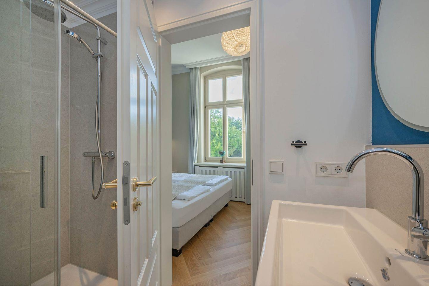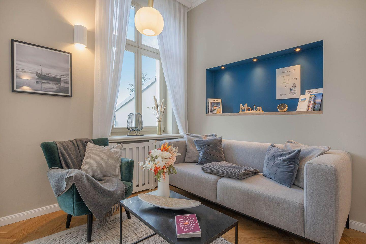 Residieren Sie in der Ferienwohnung Villa Luise 06 in Heringsdorf, einer Perle der historischen Villen im klassischen Stile der Bäderarchitektur. Um die Jahrhundertwende 1890 erbaut, erstrahlt sie nach umfangreicher Sanierung und Modernisierung seit 2021 in neuem Glanz. In einer ruhigen Seitenstraße des Ostseebades Heringsdorf gelegen, erreichen Sie sowohl den Strand als auch Einkaufsmöglichkeiten, einen Bäcker und den Bahnhof nach wenigen Schritten.