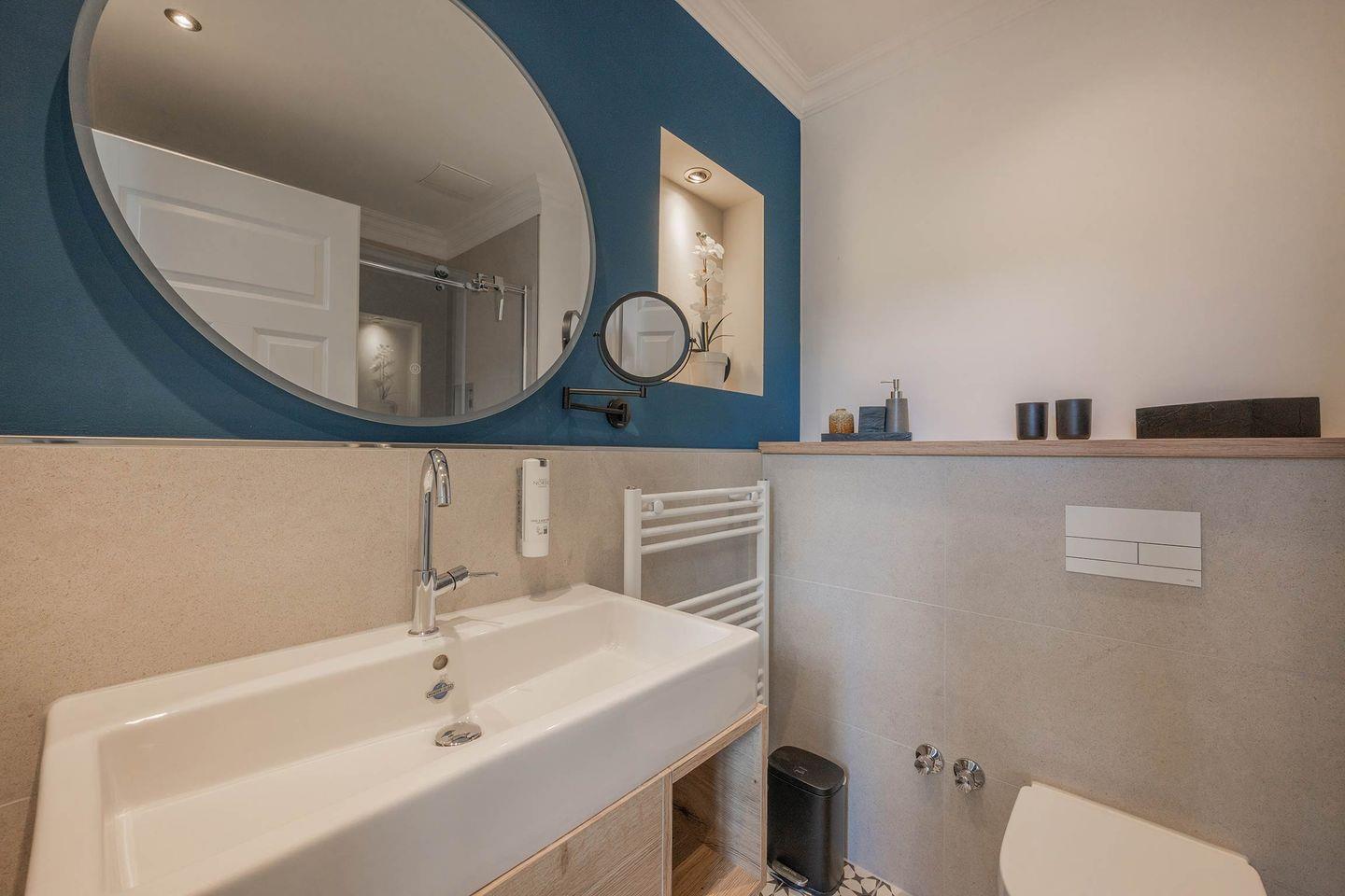 Das komfortable Boxspring-Doppelbett im Schlafzimmer (Liegefläche 1,60m x 2,00m) verspricht erholsamen Schlaf. Ein Kleiderschrank für Ihre Garderobe ist vorhanden. Selbstverständlich können die Fenster verdunkelt werden. Das angrenzende Badezimmer verfügt über eine ebenerdige Echtglasdusche, Waschtisch, WC und Handtuchheizung und komplettiert das Angebot dieser Wohnung.