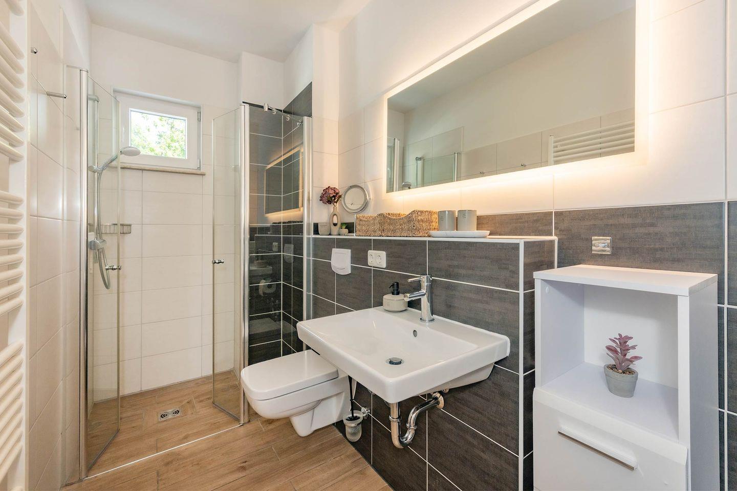 Das moderne und stilvolle Badezimmer überzeugt mit einer Dusche samt flachem Einstieg, die den Komfort Ihres Aufenthalts zusätzlich erhöht. Für einen unbeschwerten Start in Ihren Urlaub ist eine Grundausstattung an allen wichtigen Utensilien bereits vorhanden. Ein eigener Stellplatz für Ihr Fahrzeug steht Ihnen zur Verfügung, und WLAN ist selbstverständlich kostenfrei nutzbar. Ein besonderes Plus für Fahrradliebhaber ist der wohnungseigene, abschließbare Fahrradkeller, der Ihnen ermöglicht, Ihre Fahrräder sicher und bequem zu verstauen. Erleben Sie in der Stadtvilla Blumenhof 7 einen erholsamen und zugleich erlebnisreichen Urlaub im Herzen von Heringsdorf.